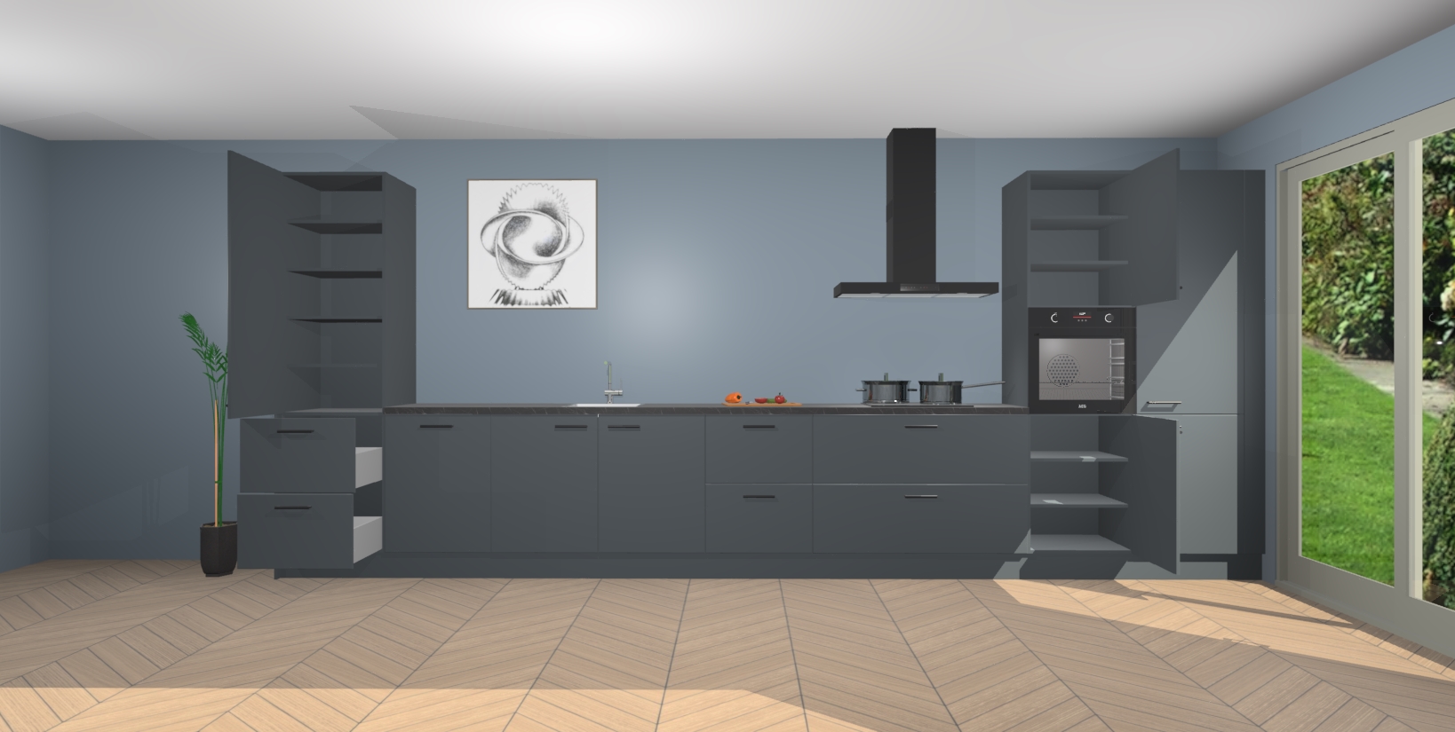 In deze box zijn alle kleuren verzameld van de deuren en werkbladen. Vraag de gratis kleurenbox aan en kijk thuis rustig verder!
