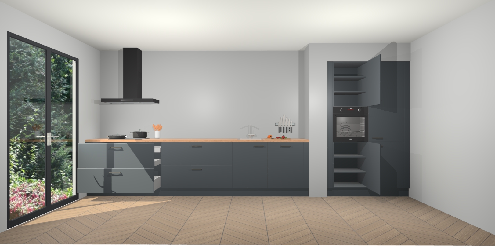 Maak kennis met de Onyxgrijze keuken Calgary - de perfecte aanvulling voor uw moderne keuken! Ervaar tijdloos design, elegantie en een chique uitstraling met onze handgrepen, soft-close deuren en veel opbergruimte. Dit alles wordt aangeboden tegen een vaste lage prijs voor ongeëvenaarde Duitse keukenkwaliteit!