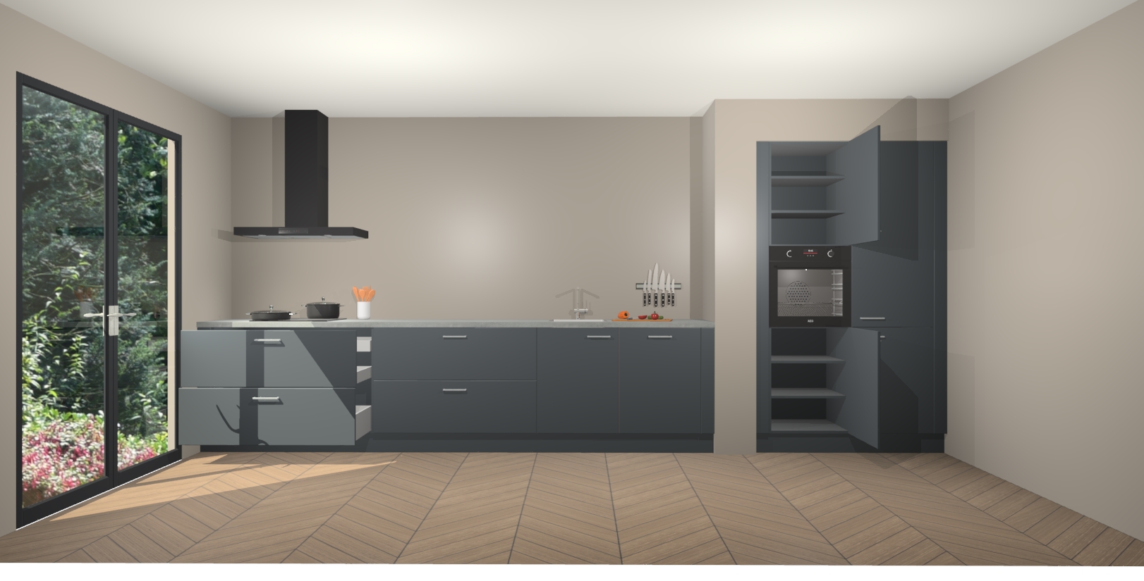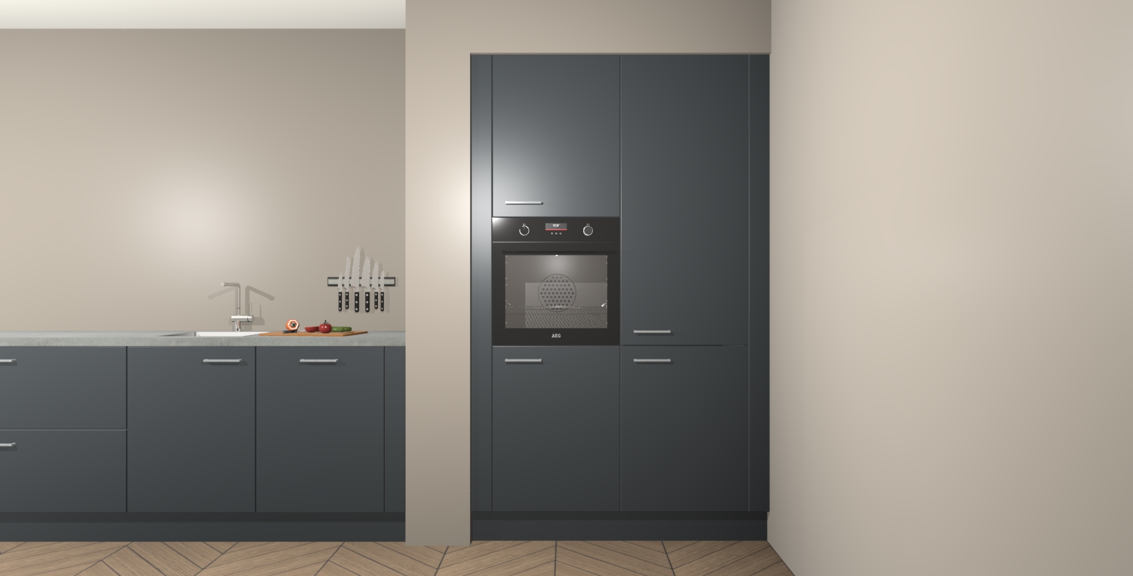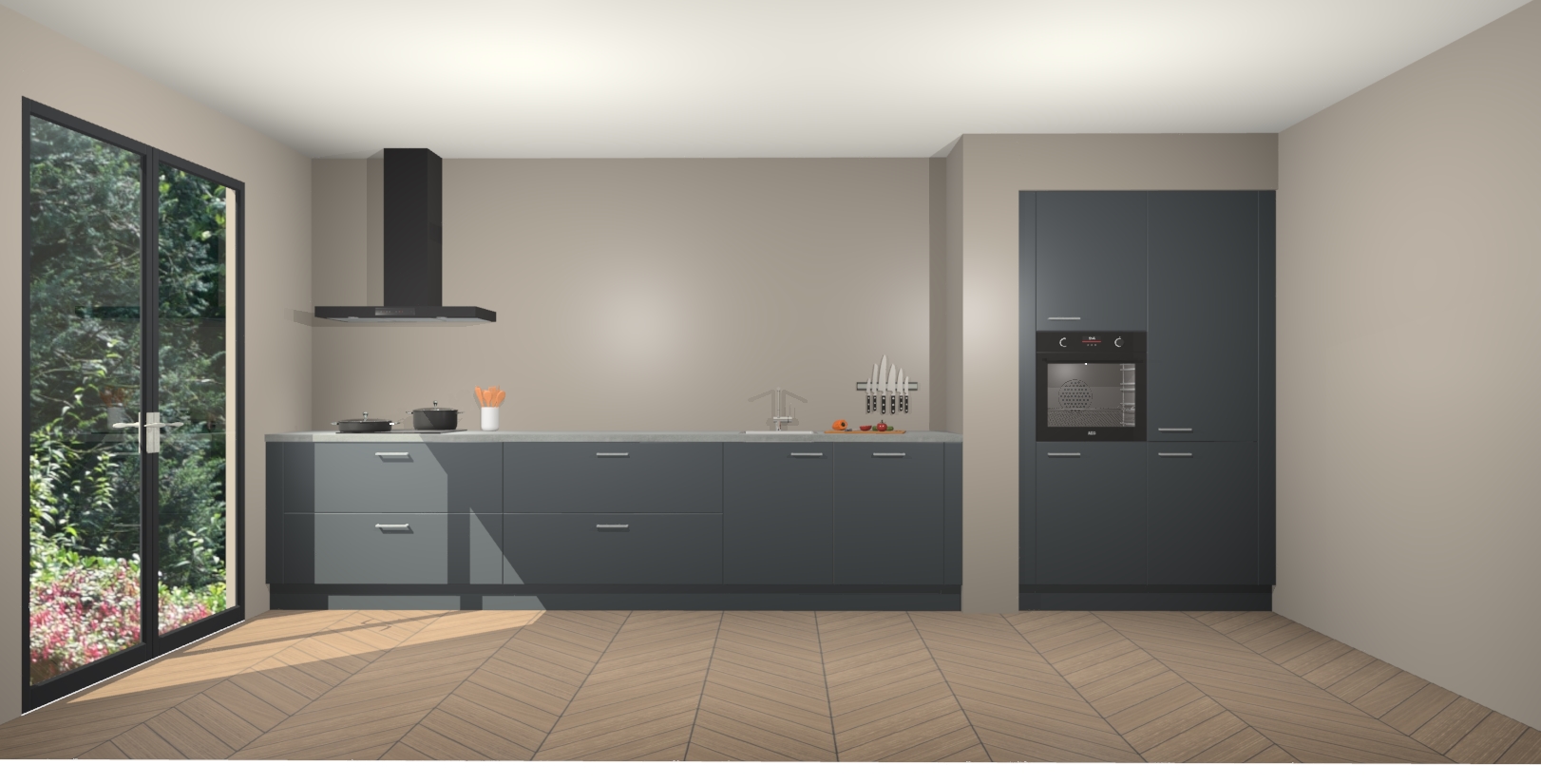 Maak kennis met de Onyxgrijze keuken Calgary - de perfecte aanvulling voor uw moderne keuken! Ervaar tijdloos design, elegantie en een chique uitstraling met onze handgrepen, soft-close deuren en veel opbergruimte. Dit alles wordt aangeboden tegen een vaste lage prijs voor ongeëvenaarde Duitse keukenkwaliteit!