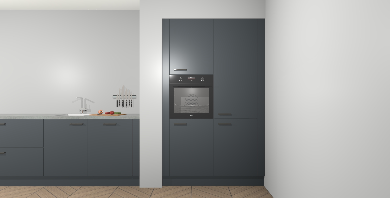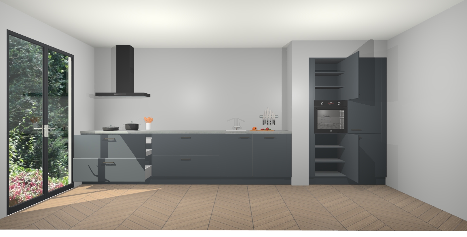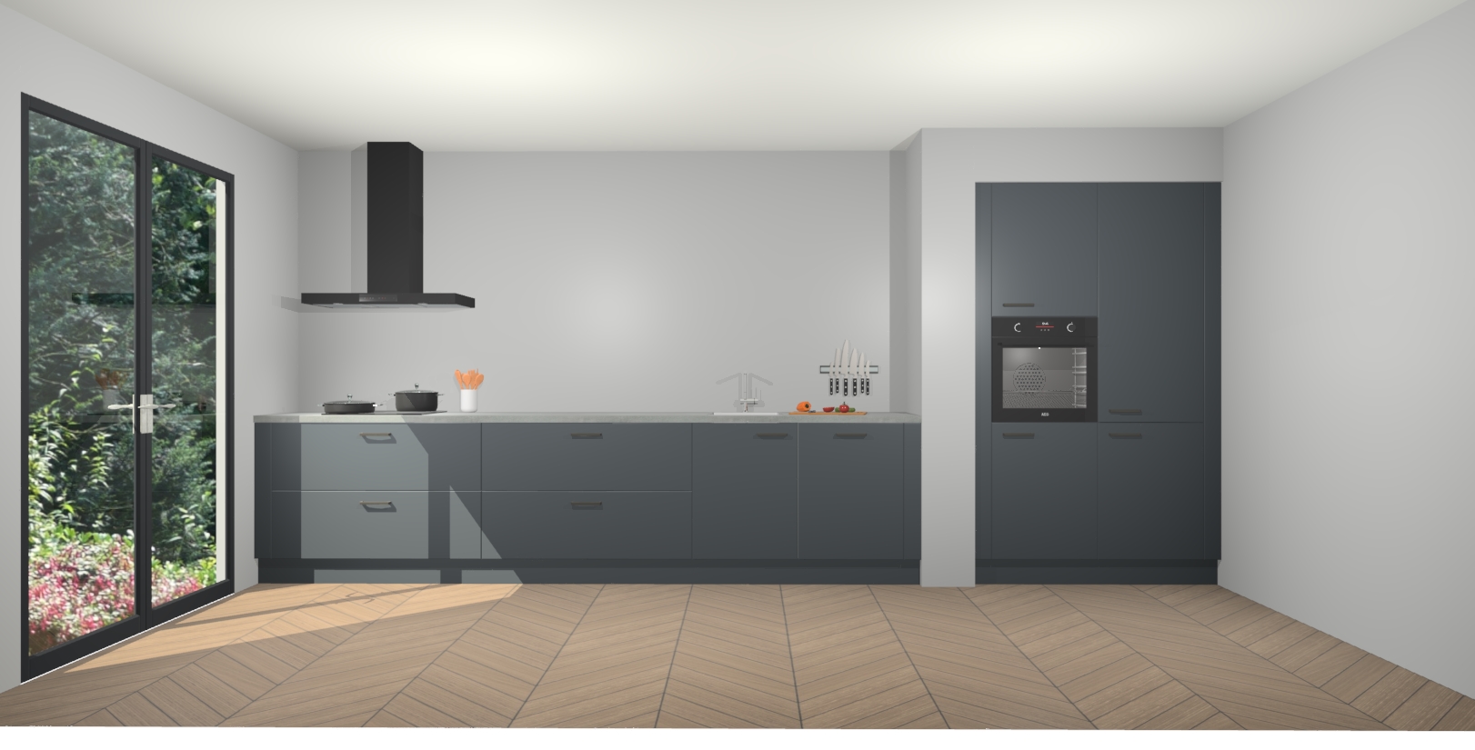 Maak kennis met de Onyxgrijze keuken Calgary - de perfecte aanvulling voor uw moderne keuken! Ervaar tijdloos design, elegantie en een chique uitstraling met onze handgrepen, soft-close deuren en veel opbergruimte. Dit alles wordt aangeboden tegen een vaste lage prijs voor ongeëvenaarde Duitse keukenkwaliteit!