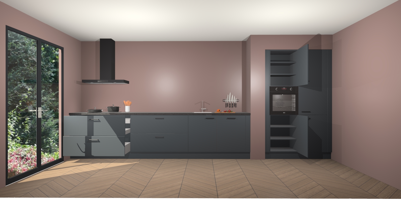 Maak kennis met de Onyxgrijze keuken Calgary - de perfecte aanvulling voor uw moderne keuken! Ervaar tijdloos design, elegantie en een chique uitstraling met onze handgrepen, soft-close deuren en veel opbergruimte. Dit alles wordt aangeboden tegen een vaste lage prijs voor ongeëvenaarde Duitse keukenkwaliteit!