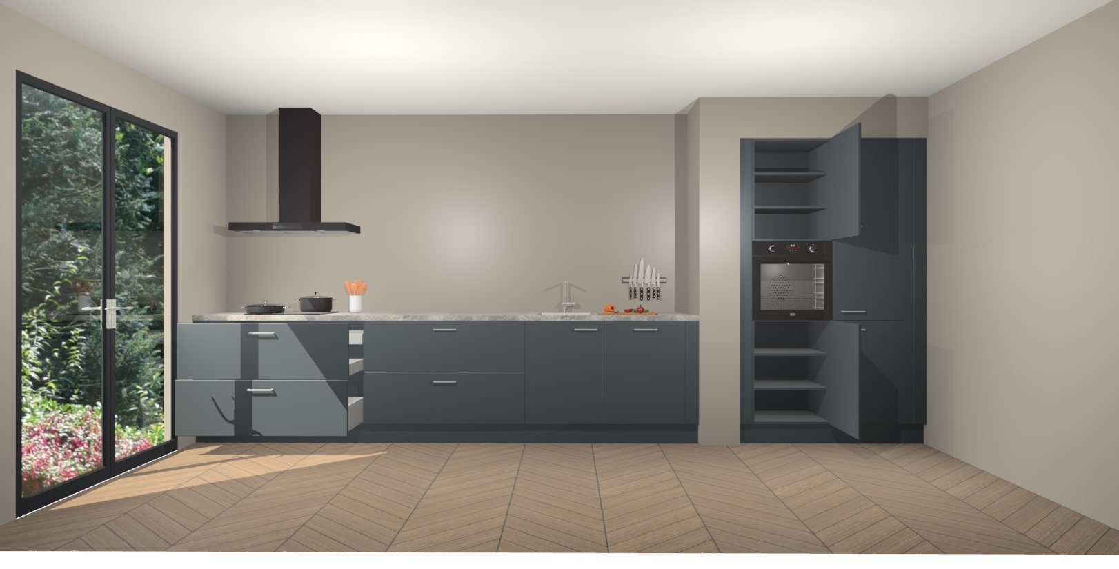 Maak kennis met de Onyxgrijze keuken Calgary - de perfecte aanvulling voor uw moderne keuken! Ervaar tijdloos design, elegantie en een chique uitstraling met onze handgrepen, soft-close deuren en veel opbergruimte. Dit alles wordt aangeboden tegen een vaste lage prijs voor ongeëvenaarde Duitse keukenkwaliteit!