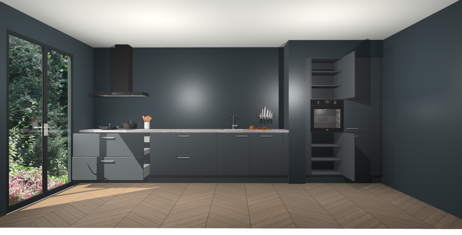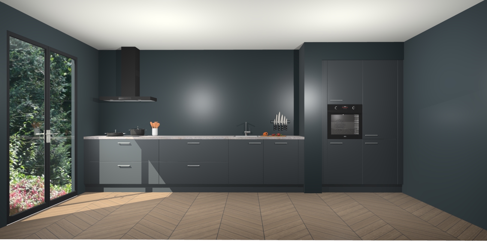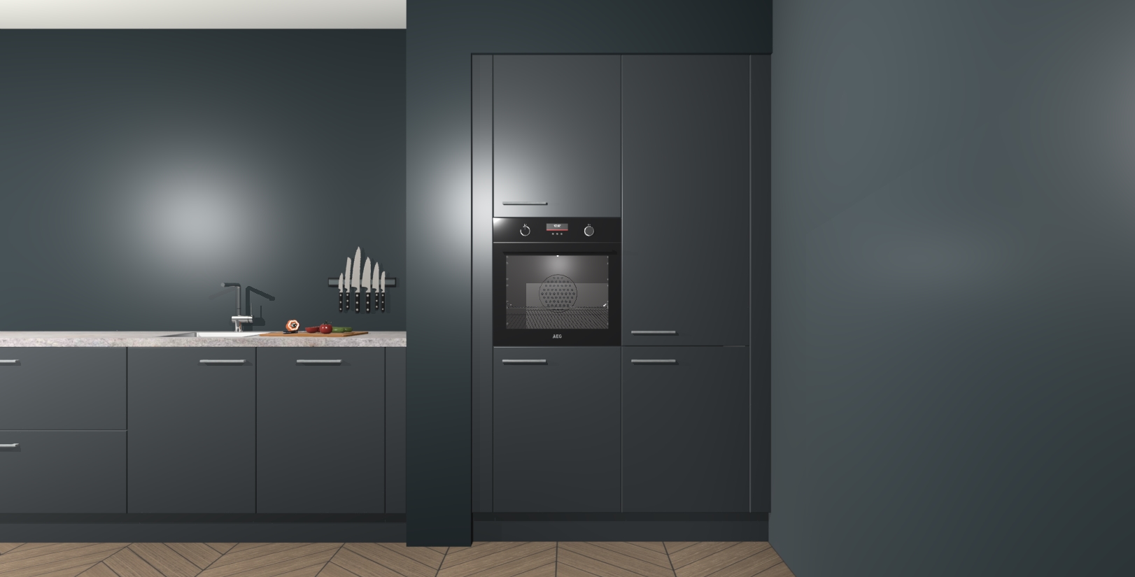 Maak kennis met de Onyxgrijze keuken Calgary - de perfecte aanvulling voor uw moderne keuken! Ervaar tijdloos design, elegantie en een chique uitstraling met onze handgrepen, soft-close deuren en veel opbergruimte. Dit alles wordt aangeboden tegen een vaste lage prijs voor ongeëvenaarde Duitse keukenkwaliteit!