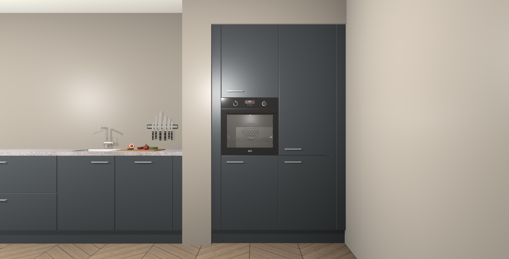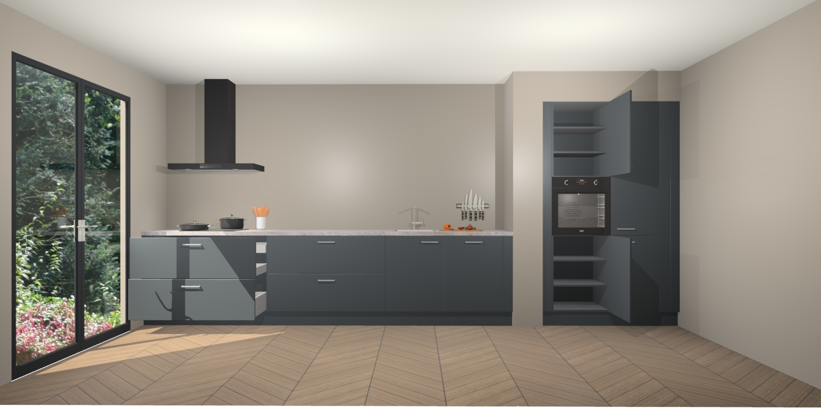 Maak kennis met de Onyxgrijze keuken Calgary - de perfecte aanvulling voor uw moderne keuken! Ervaar tijdloos design, elegantie en een chique uitstraling met onze handgrepen, soft-close deuren en veel opbergruimte. Dit alles wordt aangeboden tegen een vaste lage prijs voor ongeëvenaarde Duitse keukenkwaliteit!