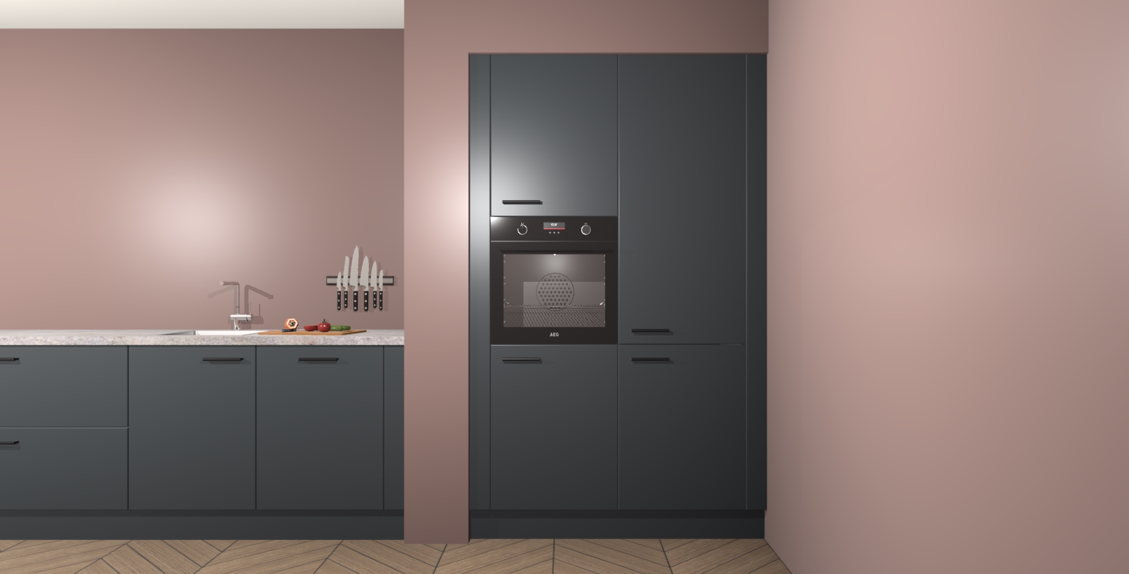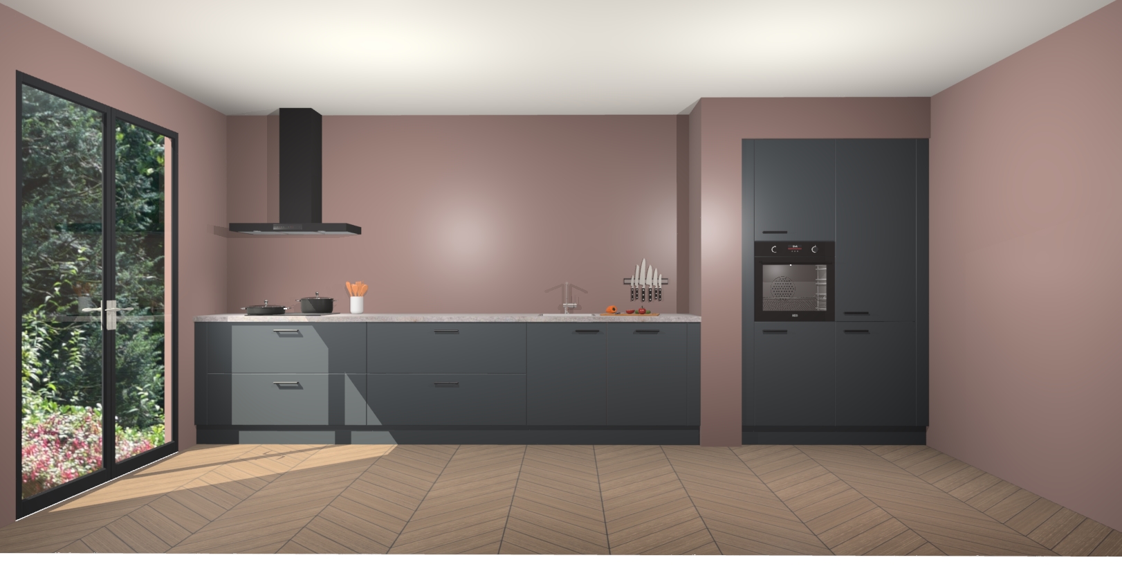 Maak kennis met de Onyxgrijze keuken Calgary - de perfecte aanvulling voor uw moderne keuken! Ervaar tijdloos design, elegantie en een chique uitstraling met onze handgrepen, soft-close deuren en veel opbergruimte. Dit alles wordt aangeboden tegen een vaste lage prijs voor ongeëvenaarde Duitse keukenkwaliteit!