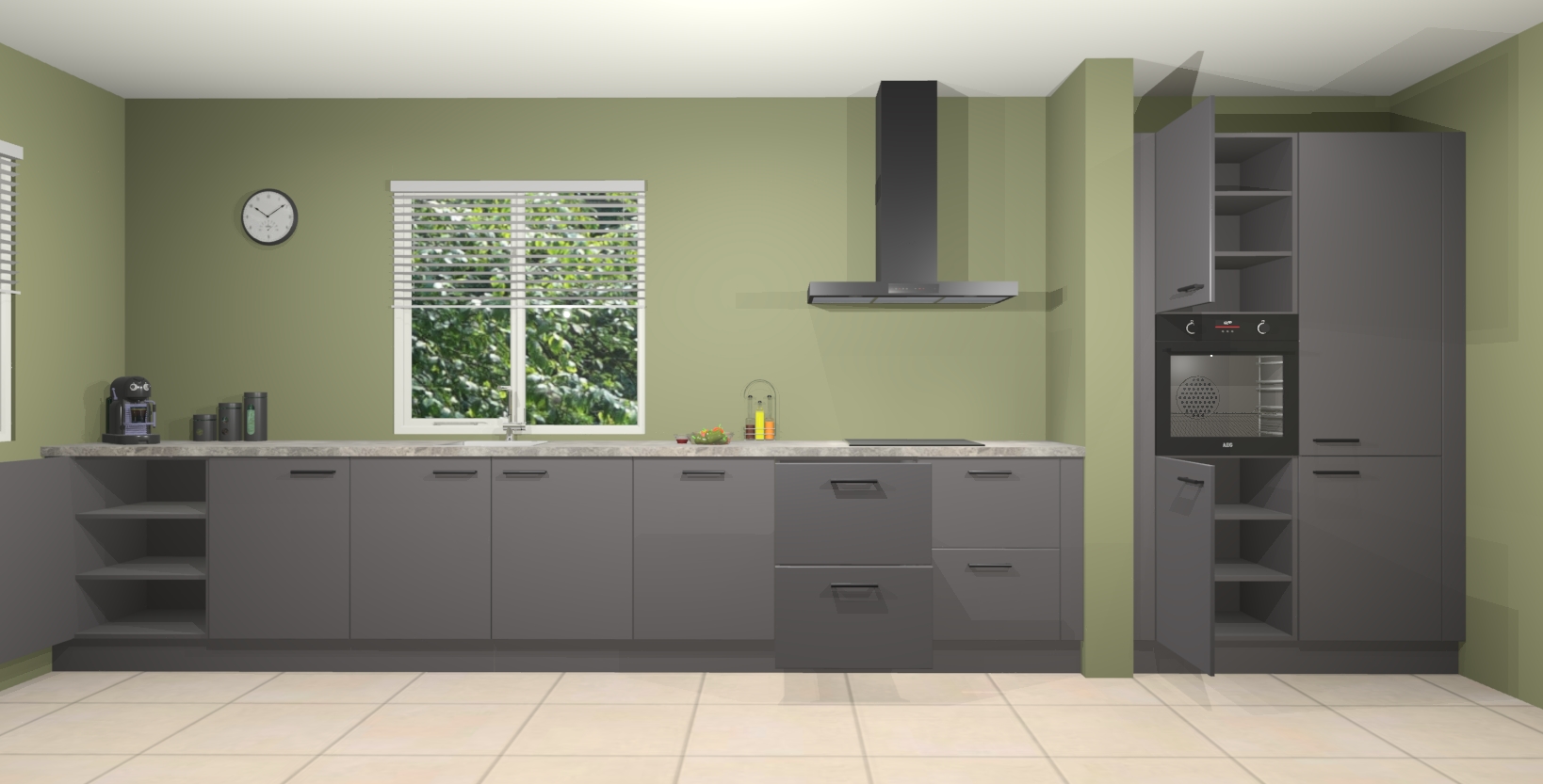 Maak kennis met de Onyxgrijze keuken Elzas - de perfecte aanvulling voor uw moderne keuken! Ervaar tijdloos design, elegantie en een chique uitstraling met onze handgrepen, soft-close deuren en veel opbergruimte. Dit alles wordt aangeboden tegen een vaste lage prijs voor ongeëvenaarde Duitse keukenkwaliteit!