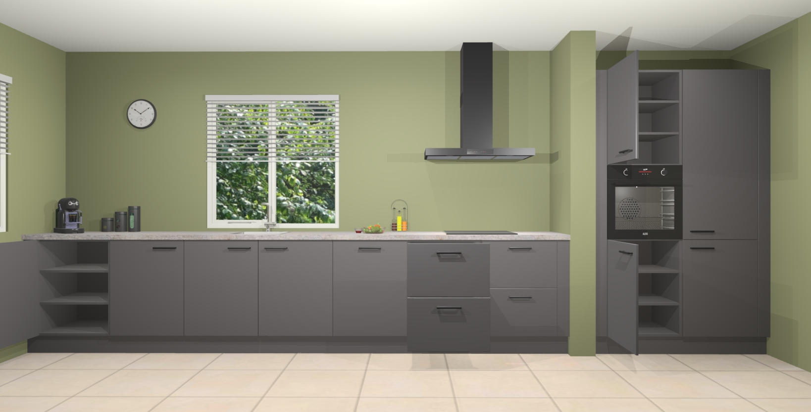 Maak kennis met de Onyxgrijze keuken Elzas - de perfecte aanvulling voor uw moderne keuken! Ervaar tijdloos design, elegantie en een chique uitstraling met onze handgrepen, soft-close deuren en veel opbergruimte. Dit alles wordt aangeboden tegen een vaste lage prijs voor ongeëvenaarde Duitse keukenkwaliteit!