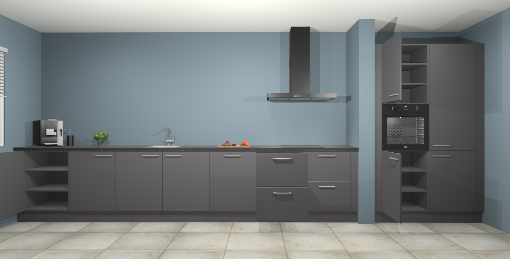 Maak kennis met de Onyxgrijze keuken Elzas - de perfecte aanvulling voor uw moderne keuken! Ervaar tijdloos design, elegantie en een chique uitstraling met onze handgrepen, soft-close deuren en veel opbergruimte. Dit alles wordt aangeboden tegen een vaste lage prijs voor ongeëvenaarde Duitse keukenkwaliteit!