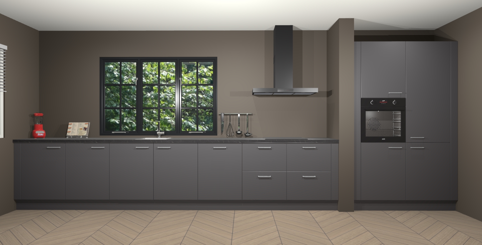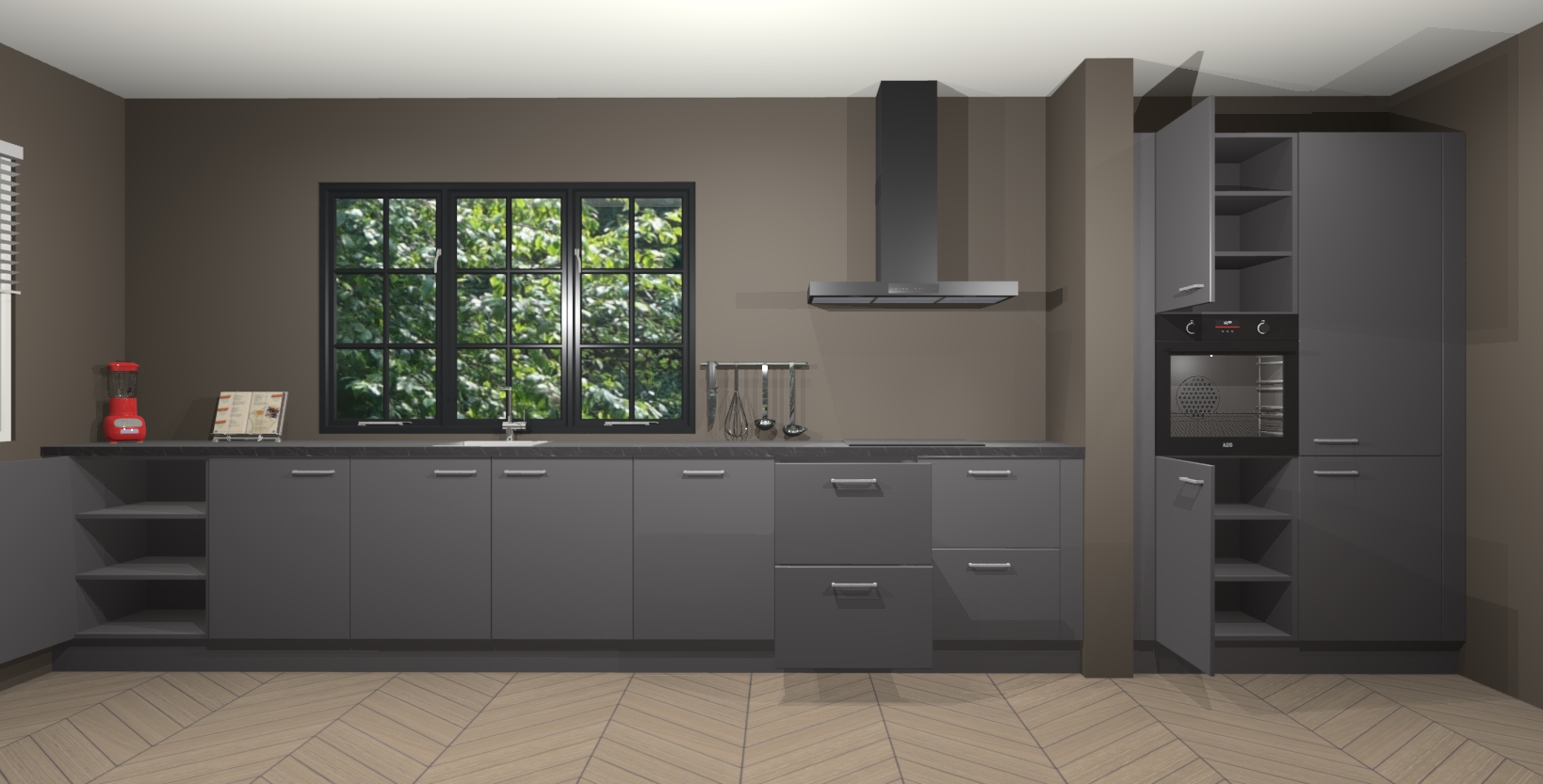 Maak kennis met de Onyxgrijze keuken Elzas - de perfecte aanvulling voor uw moderne keuken! Ervaar tijdloos design, elegantie en een chique uitstraling met onze handgrepen, soft-close deuren en veel opbergruimte. Dit alles wordt aangeboden tegen een vaste lage prijs voor ongeëvenaarde Duitse keukenkwaliteit!