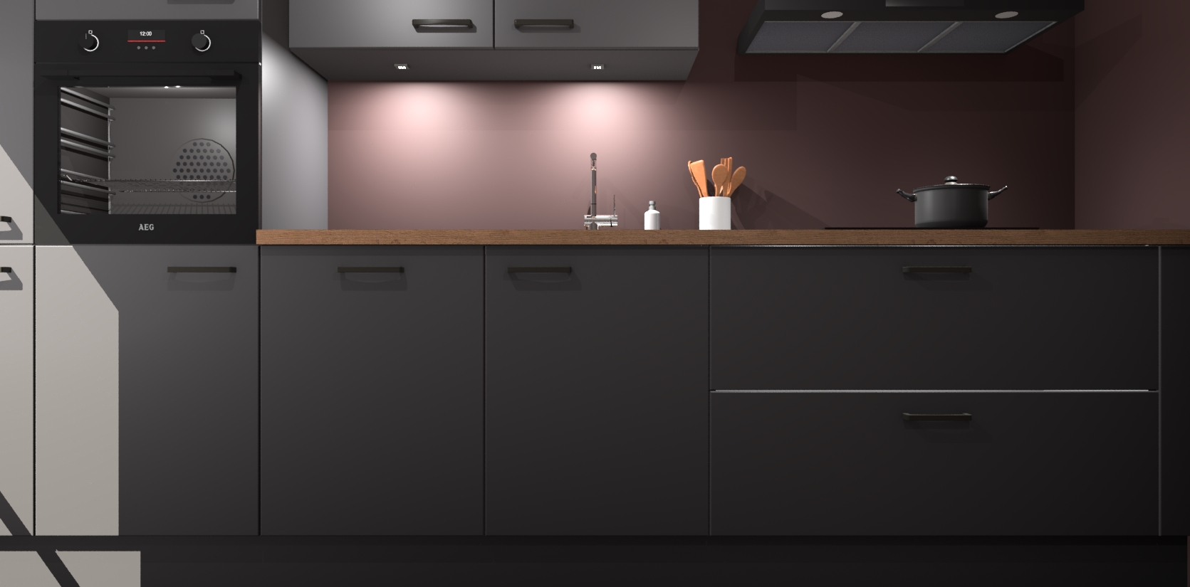 Inclusief plinten, stelpoten en werkblad