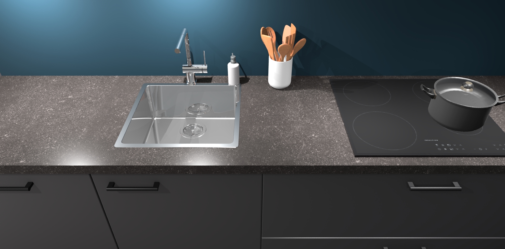 - Bij een hoekwerkblad zijn de hoeken in gevreesd en op maat gemaakt