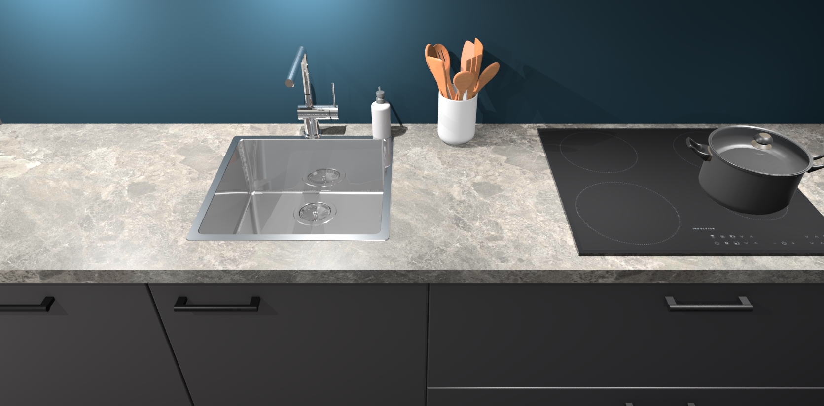 - Uitsparing van kookplaat, spoelbak en kraan dient u zelf te verzorgen.