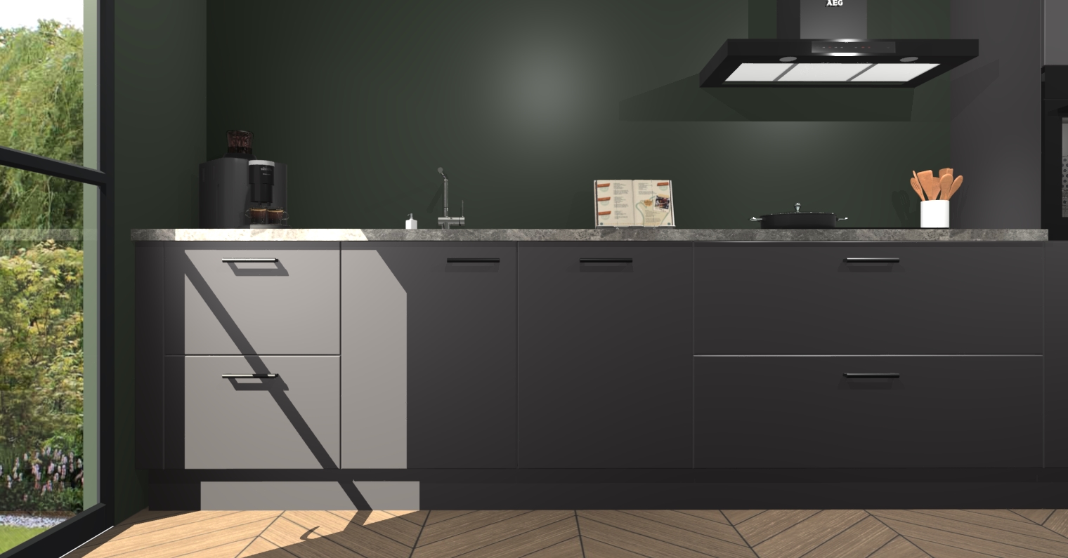 Inclusief plinten, stelpoten en werkblad