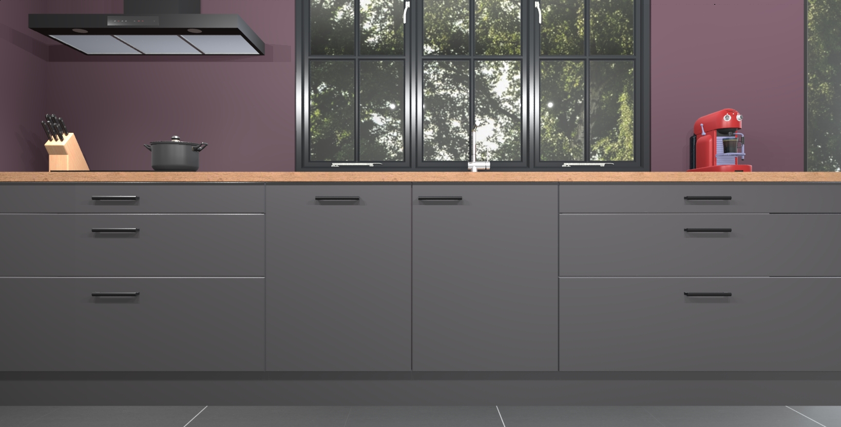 De softclose deuren openen en sluiten is ook heel eenvoudig - geniet van een moeiteloze keukenervaring, zelfs als er kinderen rondlopen. Voor extra gemak bij het plaatsen van uw bestelling bieden we ook een upgrade naar een kookplaat met geïntegreerde afzuiging.
