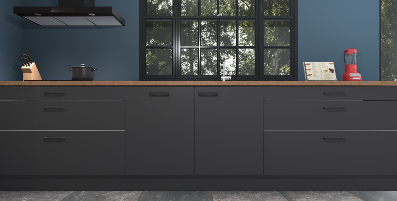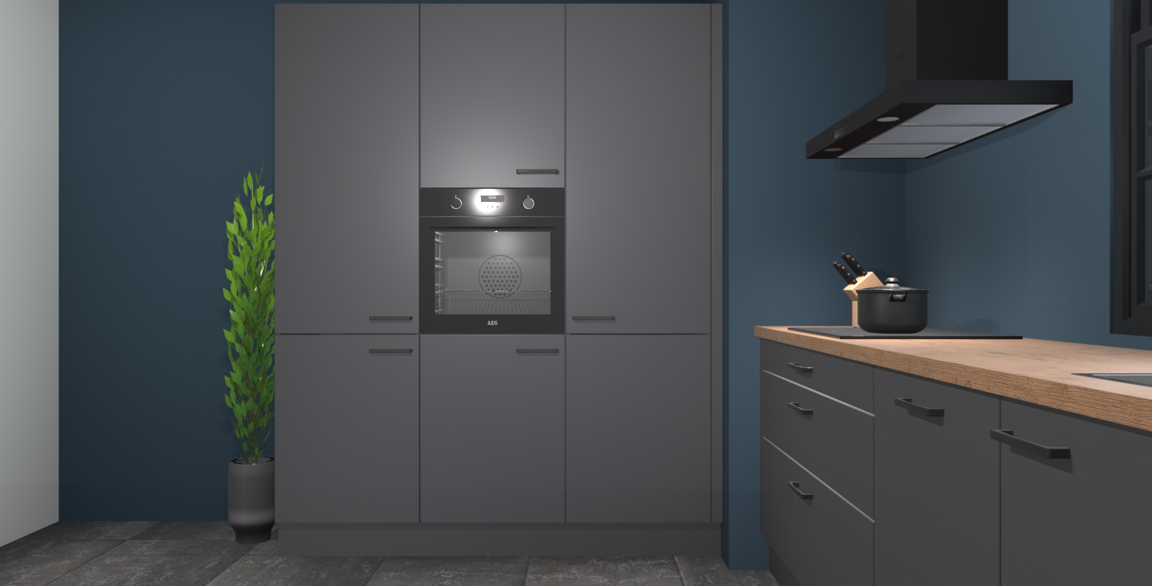 De softclose deuren openen en sluiten is ook heel eenvoudig - geniet van een moeiteloze keukenervaring, zelfs als er kinderen rondlopen. Voor extra gemak bij het plaatsen van uw bestelling bieden we ook een upgrade naar een kookplaat met geïntegreerde afzuiging.