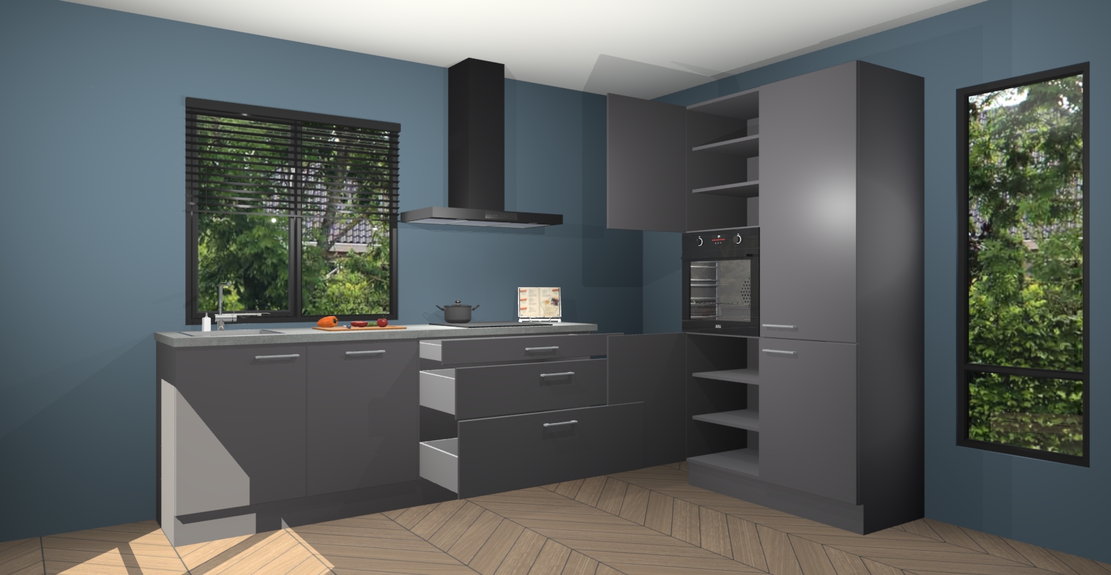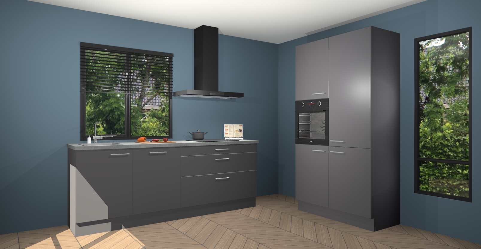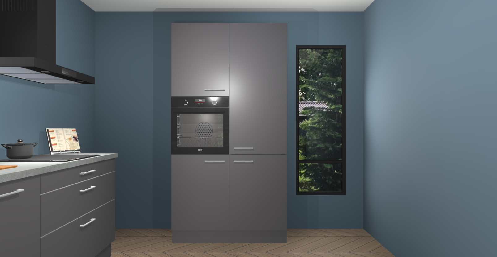 De setting is compleet gemaakt door de vijf inbouwapparaten: wanneer u gaat bestellen kunt u upgraden naar AEG-apparaten als oven, inductieplaat, afzuigkap, vaatwasser en koelkast. Kiest u voor onze Onyxgrijze keuken Monaco, dan weet u zeker dat u te maken heeft met Duitse kwaliteit. Bovendien is er altijd sprake van een lage prijs en profiteren we aantrekkelijk leveringstermijn: die bedraagt slechts 7 weken ! Om het extra makkelijk te maken worden de keukenkasten reeds voorgemonteerd geleverd.