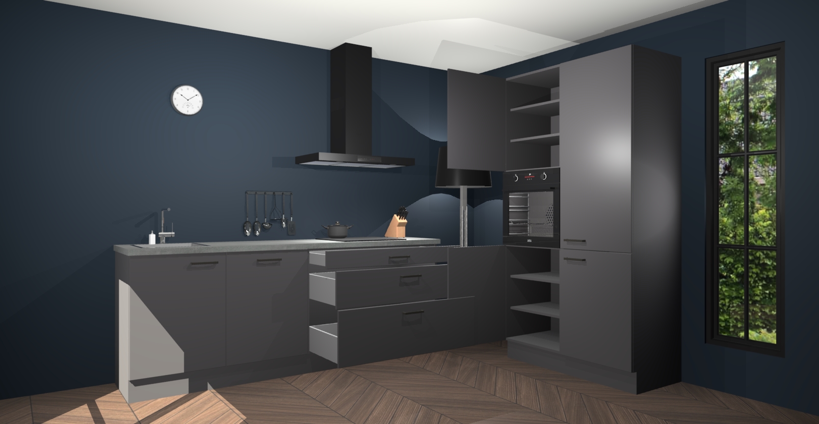 Maak kennis met de buitengewone onyxgrijze keuken Monaco! Als u op zoek bent naar een prachtige toevoeging aan uw huis, denk dan eens aan deze keuken. Met zijn unieke combinatie van onyxgrijstinten biedt hij een warme sfeer die u elke dag welkom heet in uw keuken.