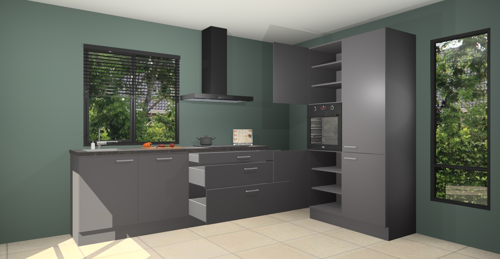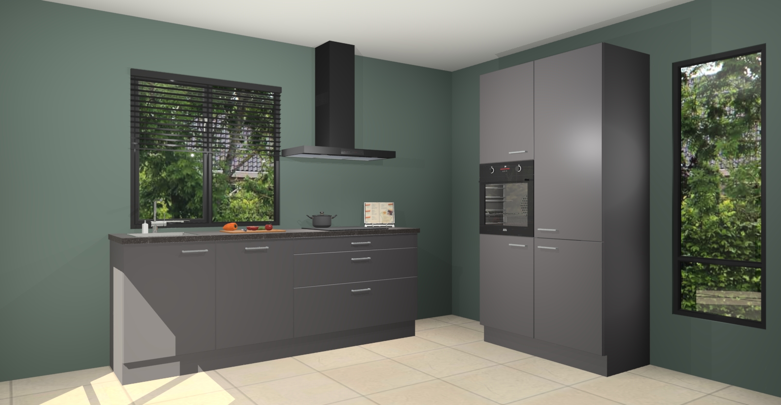 De setting is compleet gemaakt door de vijf inbouwapparaten: wanneer u gaat bestellen kunt u upgraden naar AEG-apparaten als oven, inductieplaat, afzuigkap, vaatwasser en koelkast. Kiest u voor onze Onyxgrijze keuken Monaco, dan weet u zeker dat u te maken heeft met Duitse kwaliteit. Bovendien is er altijd sprake van een lage prijs en profiteren we aantrekkelijk leveringstermijn: die bedraagt slechts 7 weken ! Om het extra makkelijk te maken worden de keukenkasten reeds voorgemonteerd geleverd.