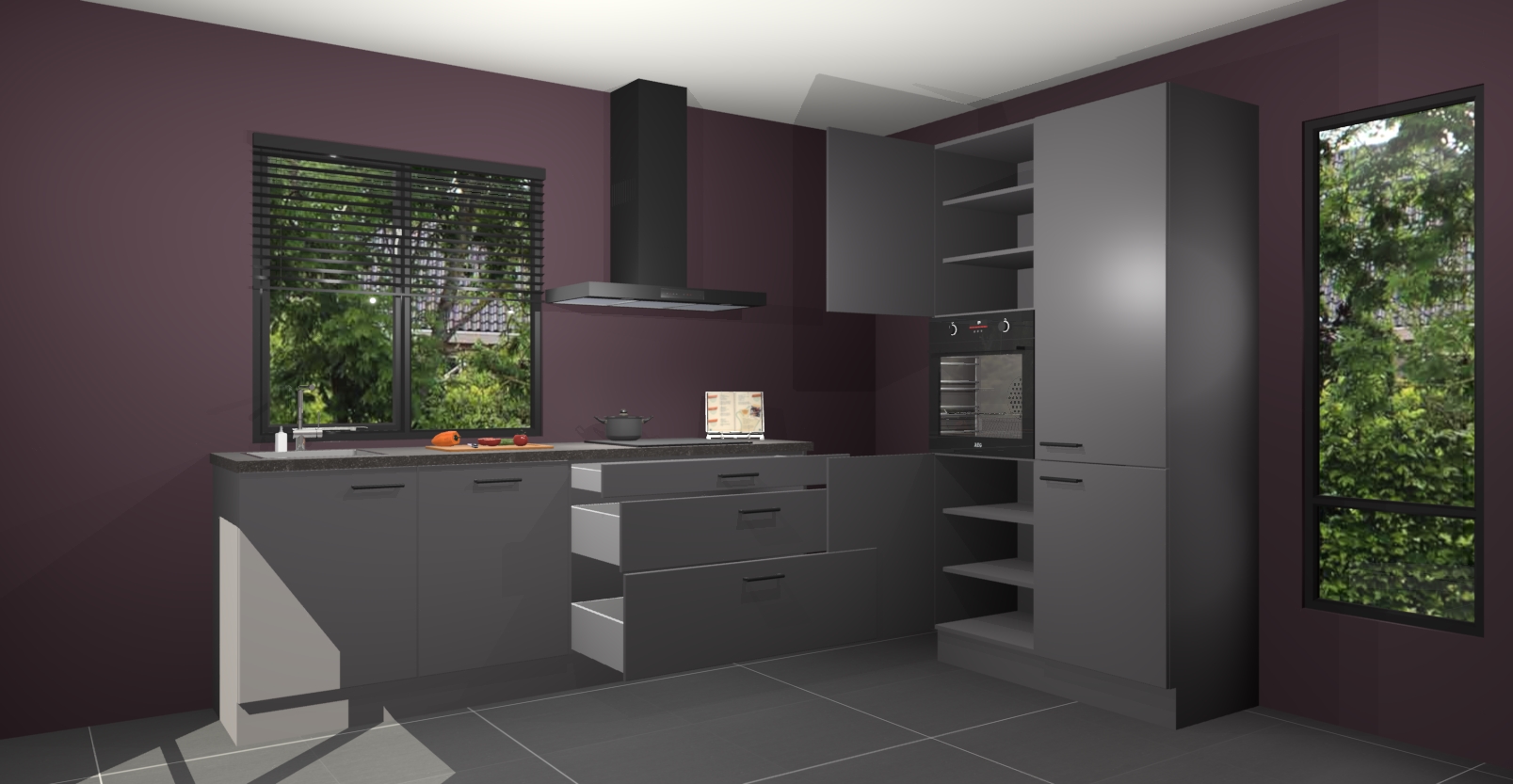 De setting is compleet gemaakt door de vijf inbouwapparaten: wanneer u gaat bestellen kunt u upgraden naar AEG-apparaten als oven, inductieplaat, afzuigkap, vaatwasser en koelkast. Kiest u voor onze Onyxgrijze keuken Monaco, dan weet u zeker dat u te maken heeft met Duitse kwaliteit. Bovendien is er altijd sprake van een lage prijs en profiteren we aantrekkelijk leveringstermijn: die bedraagt slechts 7 weken ! Om het extra makkelijk te maken worden de keukenkasten reeds voorgemonteerd geleverd.