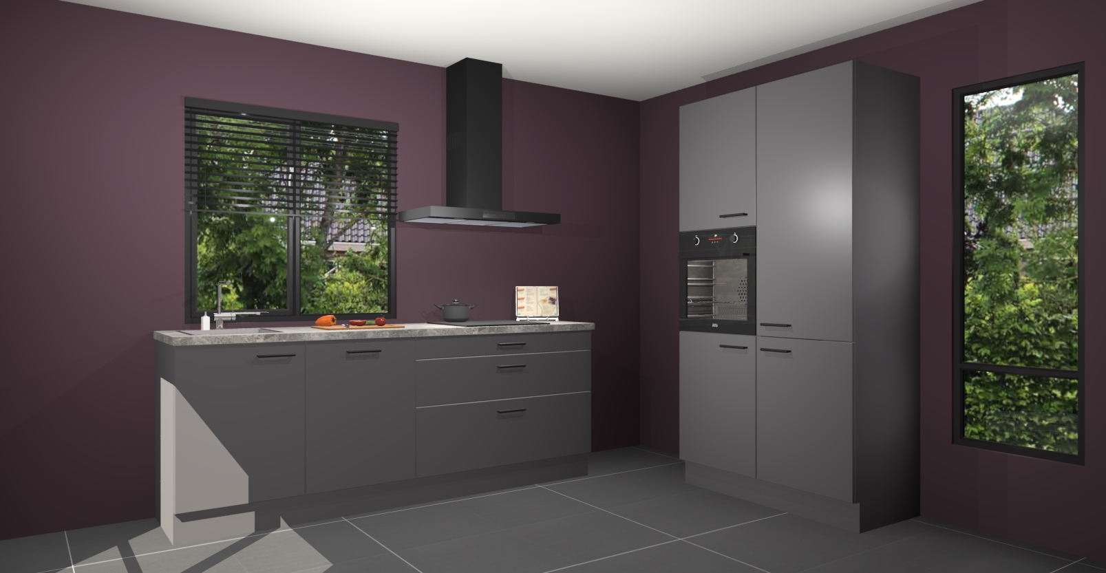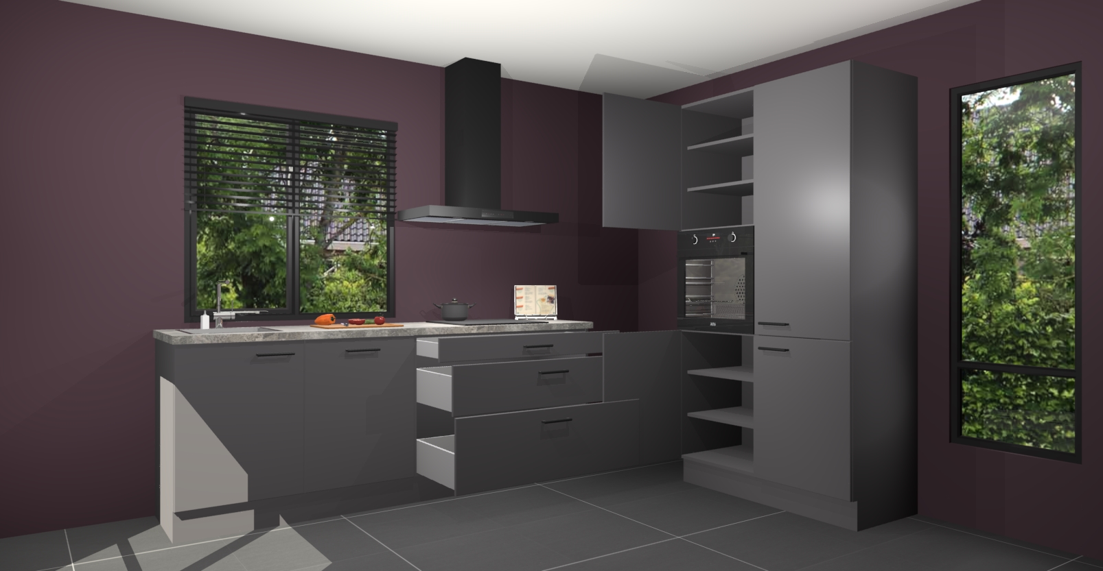 De setting is compleet gemaakt door de vijf inbouwapparaten: wanneer u gaat bestellen kunt u upgraden naar AEG-apparaten als oven, inductieplaat, afzuigkap, vaatwasser en koelkast. Kiest u voor onze Onyxgrijze keuken Monaco, dan weet u zeker dat u te maken heeft met Duitse kwaliteit. Bovendien is er altijd sprake van een lage prijs en profiteren we aantrekkelijk leveringstermijn: die bedraagt slechts 7 weken ! Om het extra makkelijk te maken worden de keukenkasten reeds voorgemonteerd geleverd.