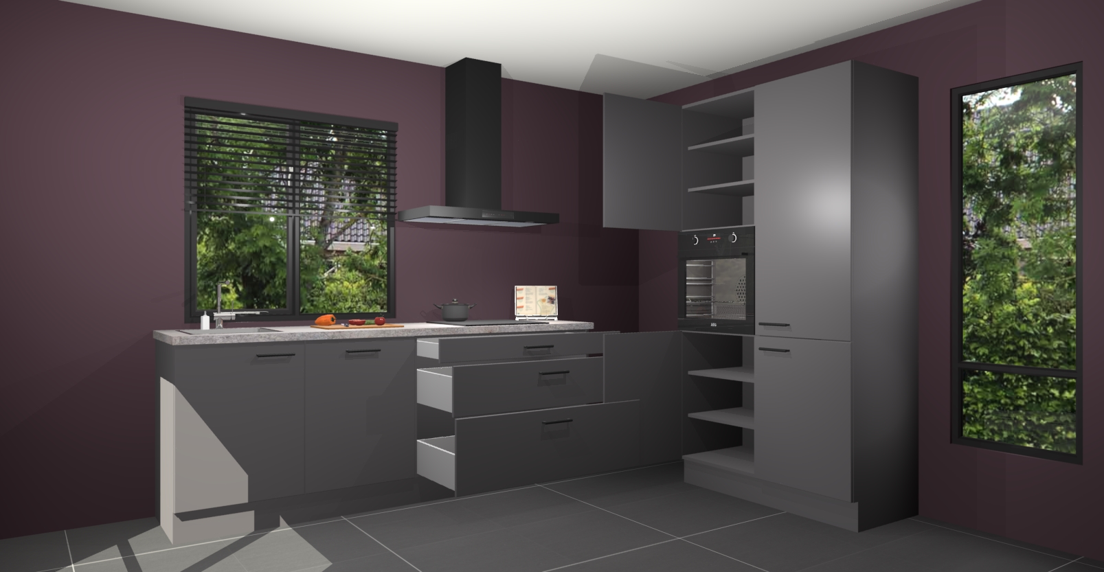 De setting is compleet gemaakt door de vijf inbouwapparaten: wanneer u gaat bestellen kunt u upgraden naar AEG-apparaten als oven, inductieplaat, afzuigkap, vaatwasser en koelkast. Kiest u voor onze Onyxgrijze keuken Monaco, dan weet u zeker dat u te maken heeft met Duitse kwaliteit. Bovendien is er altijd sprake van een lage prijs en profiteren we aantrekkelijk leveringstermijn: die bedraagt slechts 7 weken ! Om het extra makkelijk te maken worden de keukenkasten reeds voorgemonteerd geleverd.