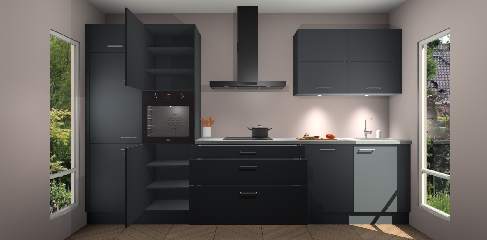 Maak kennis met de nieuwe Onyxgrijze Keuken Parijs - de perfecte designcombinatie van gemak, moderne elegantie en ultramodern design. Met een gemakkelijk te reinigen Onyxgrijze afwerking, zal de slankheid van deze keuken zeker een vleugje luxe toevoegen aan elke ruimte die hij inneemt.