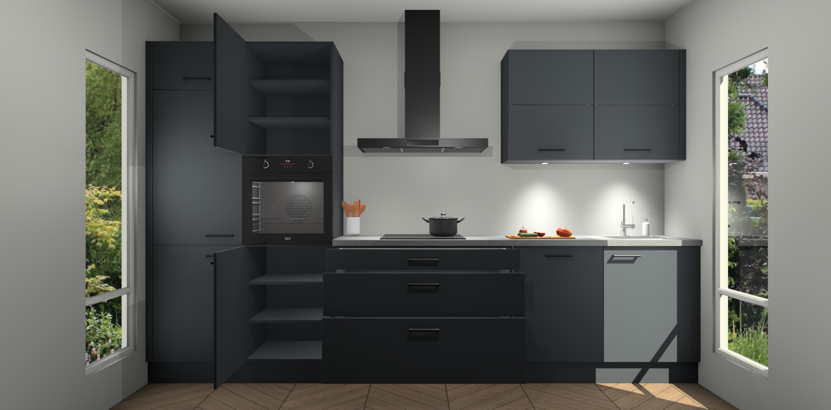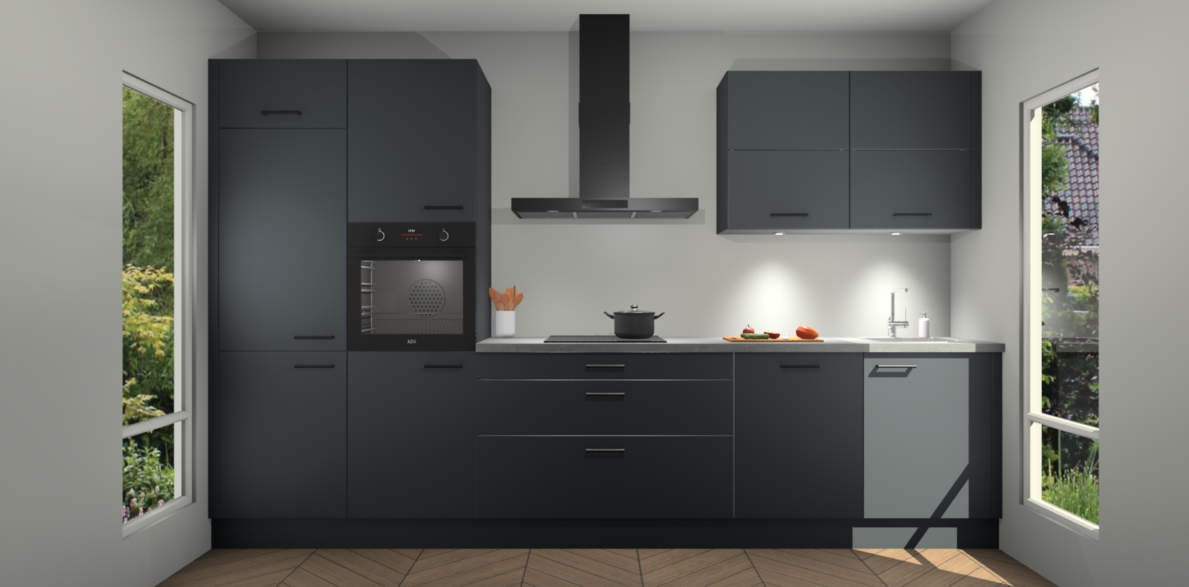 Maak kennis met de nieuwe Onyxgrijze Keuken Parijs - de perfecte designcombinatie van gemak, moderne elegantie en ultramodern design. Met een gemakkelijk te reinigen Onyxgrijze afwerking, zal de slankheid van deze keuken zeker een vleugje luxe toevoegen aan elke ruimte die hij inneemt.