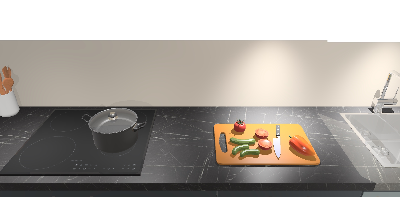 - Uitsparing van kookplaat, spoelbak en kraan dient u zelf te verzorgen.