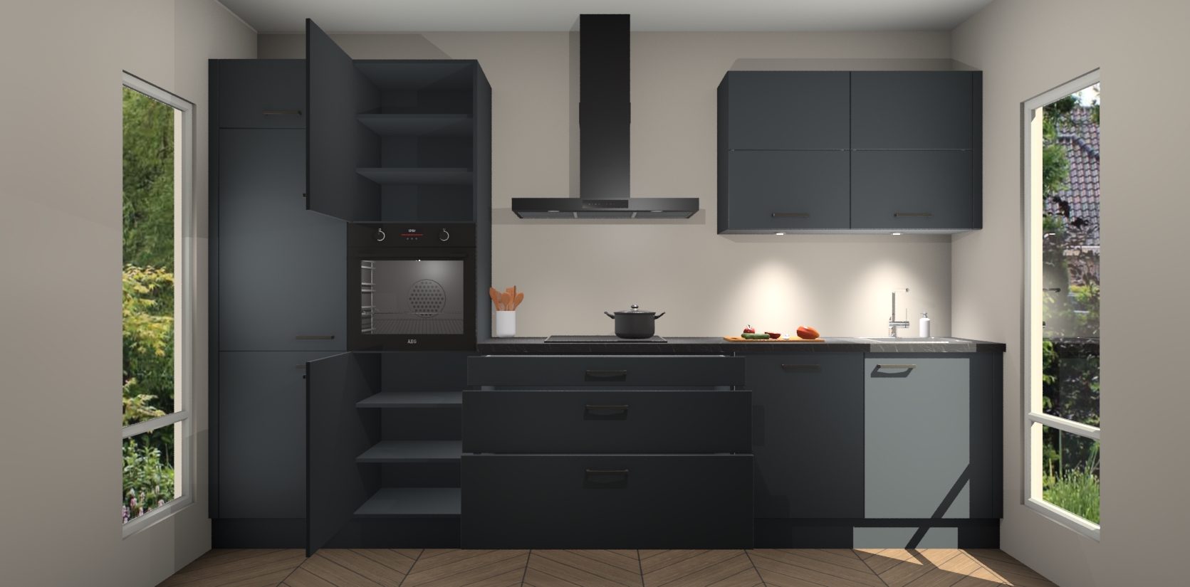 Maak kennis met de nieuwe Onyxgrijze Keuken Parijs - de perfecte designcombinatie van gemak, moderne elegantie en ultramodern design. Met een gemakkelijk te reinigen Onyxgrijze afwerking, zal de slankheid van deze keuken zeker een vleugje luxe toevoegen aan elke ruimte die hij inneemt.
