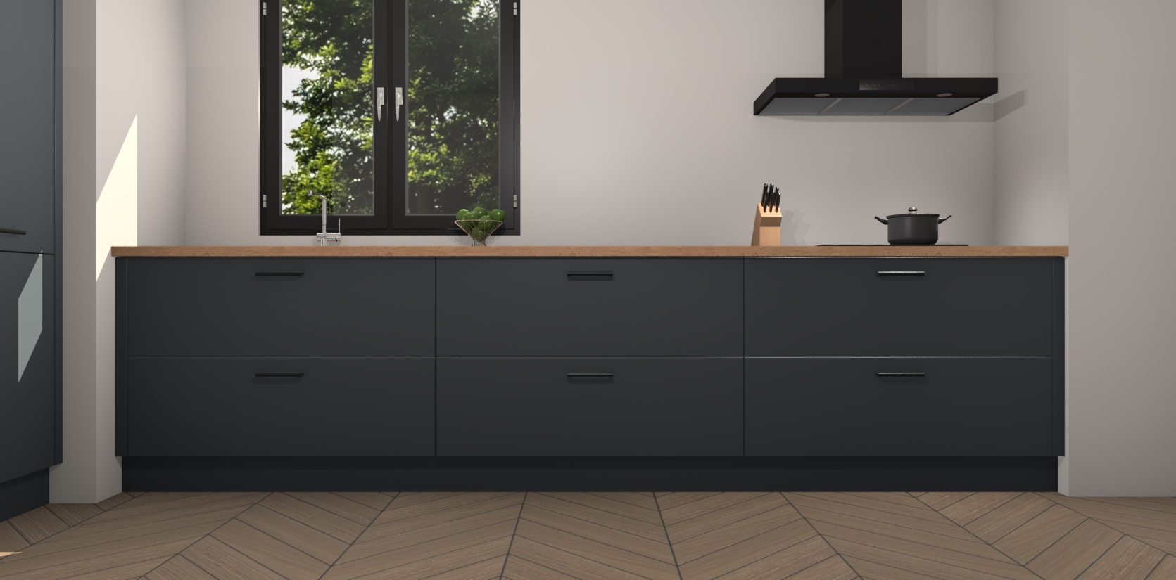 Inclusief plinten, stelpoten en werkblad