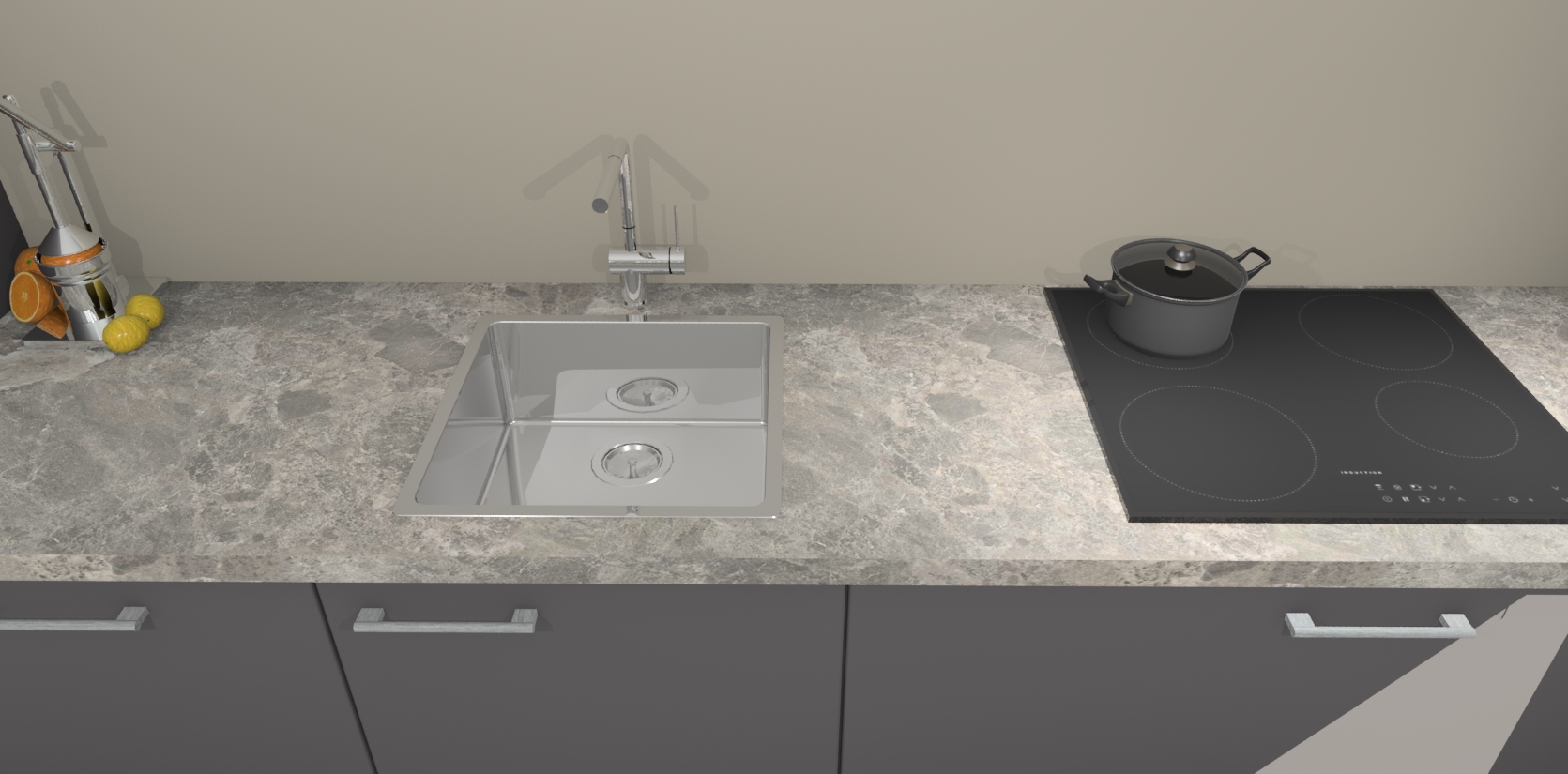 - Uitsparing van kookplaat, spoelbak en kraan dient u zelf te verzorgen.