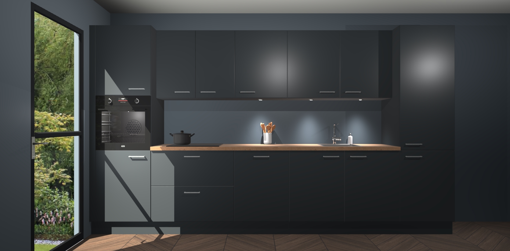 Dit is de perfecte keuken voor wie op zoek is naar een luxueuze stijl zonder zijn portemonnee te legen! Het chique ontwerp van de onyxgrijze keuken Wels voegt dat vleugje verfijning toe aan elk huis. Het gemak van voorgemonteerde kasten bespaart u talloze uren tijd en energie, zodat u veel sneller dan verwacht kunt beginnen te genieten van uw prachtige nieuwe keuken. Bovendien bedraagt de levertijd slechts 7 weken.