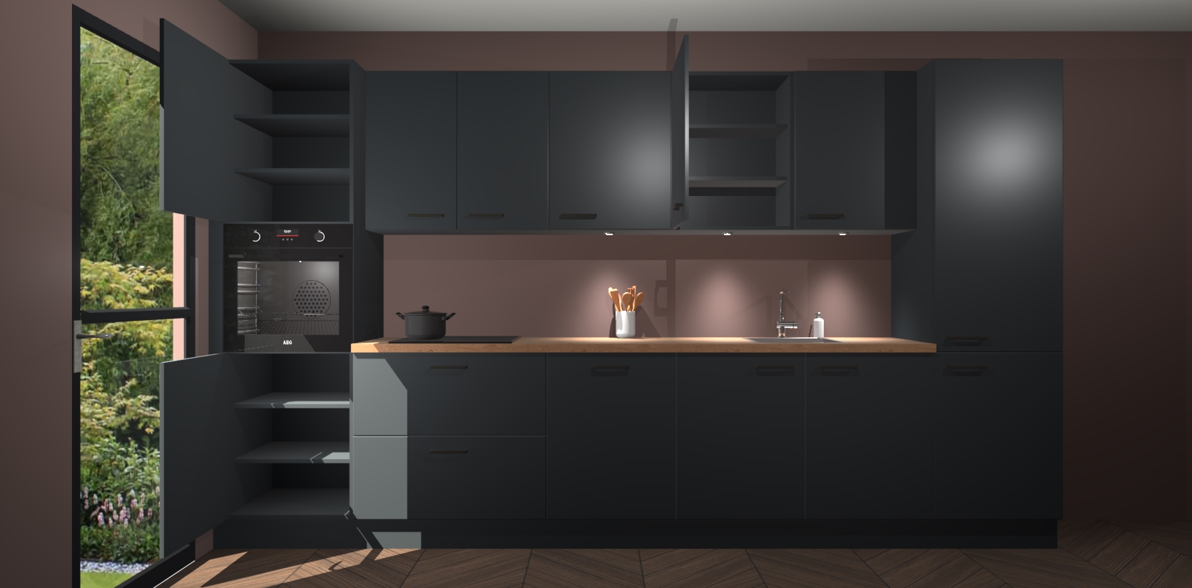 Dit is de perfecte keuken voor wie op zoek is naar een luxueuze stijl zonder zijn portemonnee te legen! Het chique ontwerp van de onyxgrijze keuken Wels voegt dat vleugje verfijning toe aan elk huis. Het gemak van voorgemonteerde kasten bespaart u talloze uren tijd en energie, zodat u veel sneller dan verwacht kunt beginnen te genieten van uw prachtige nieuwe keuken. Bovendien bedraagt de levertijd slechts 7 weken.