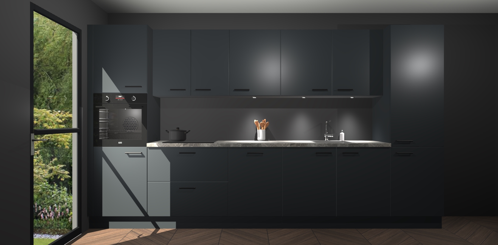 Dit is de perfecte keuken voor wie op zoek is naar een luxueuze stijl zonder zijn portemonnee te legen! Het chique ontwerp van de onyxgrijze keuken Wels voegt dat vleugje verfijning toe aan elk huis. Het gemak van voorgemonteerde kasten bespaart u talloze uren tijd en energie, zodat u veel sneller dan verwacht kunt beginnen te genieten van uw prachtige nieuwe keuken. Bovendien bedraagt de levertijd slechts 7 weken.