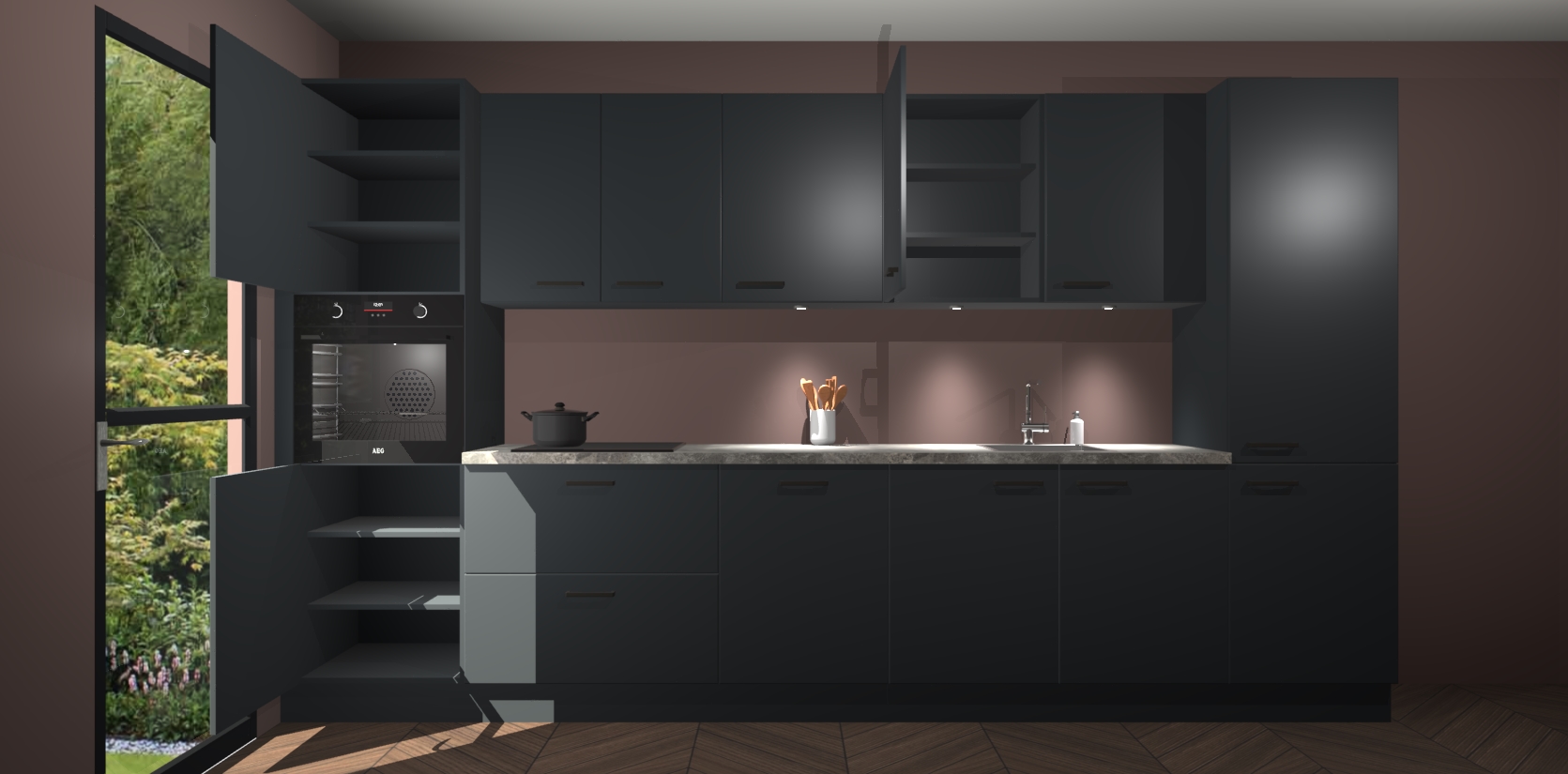 Dit is de perfecte keuken voor wie op zoek is naar een luxueuze stijl zonder zijn portemonnee te legen! Het chique ontwerp van de onyxgrijze keuken Wels voegt dat vleugje verfijning toe aan elk huis. Het gemak van voorgemonteerde kasten bespaart u talloze uren tijd en energie, zodat u veel sneller dan verwacht kunt beginnen te genieten van uw prachtige nieuwe keuken. Bovendien bedraagt de levertijd slechts 7 weken.