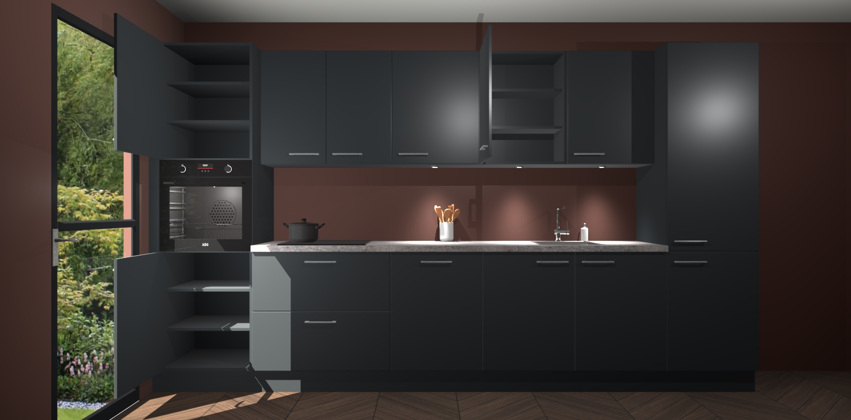 Dit is de perfecte keuken voor wie op zoek is naar een luxueuze stijl zonder zijn portemonnee te legen! Het chique ontwerp van de onyxgrijze keuken Wels voegt dat vleugje verfijning toe aan elk huis. Het gemak van voorgemonteerde kasten bespaart u talloze uren tijd en energie, zodat u veel sneller dan verwacht kunt beginnen te genieten van uw prachtige nieuwe keuken. Bovendien bedraagt de levertijd slechts 7 weken.