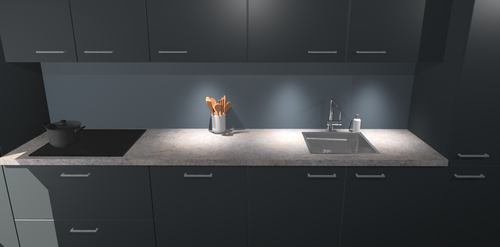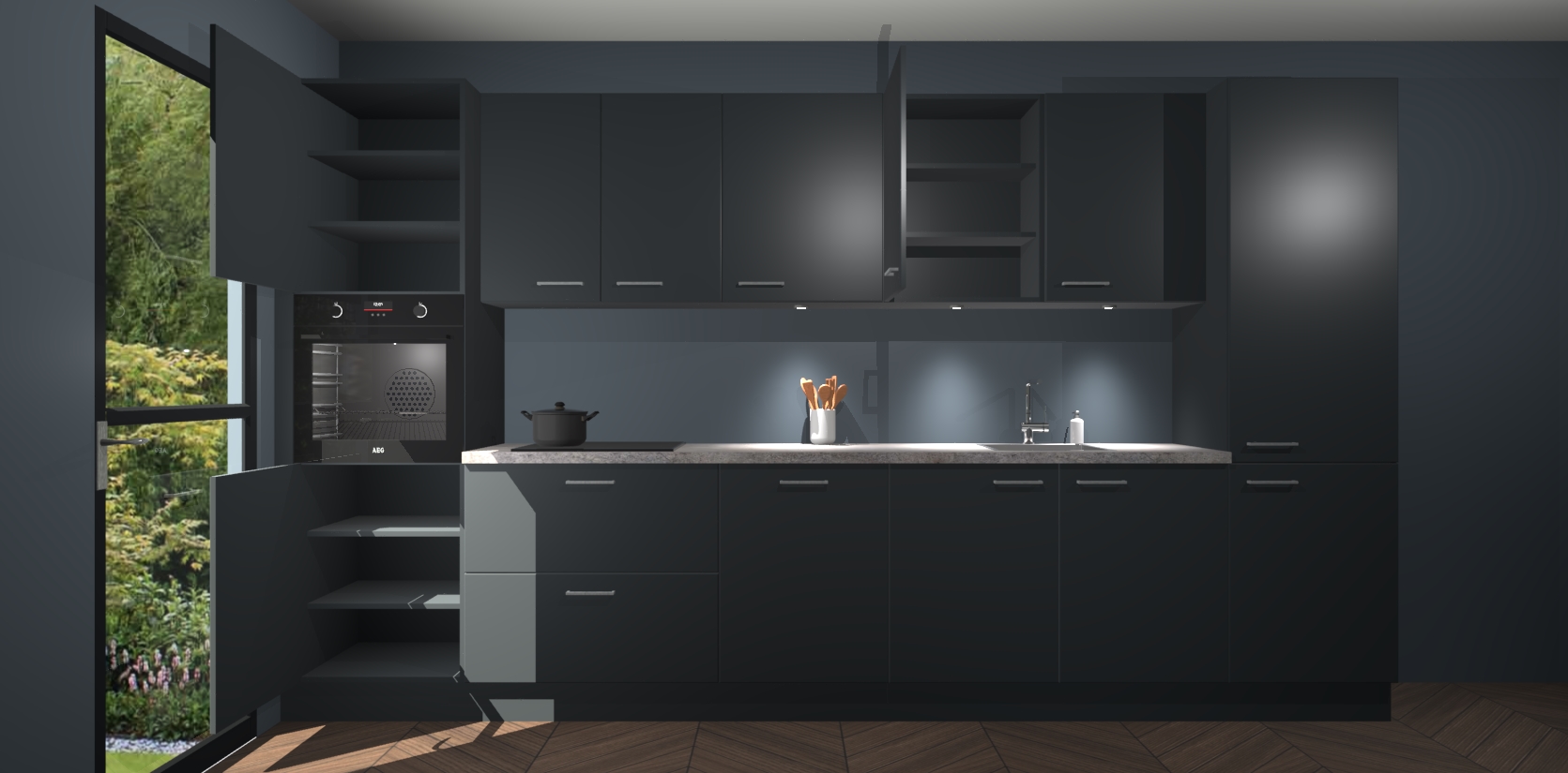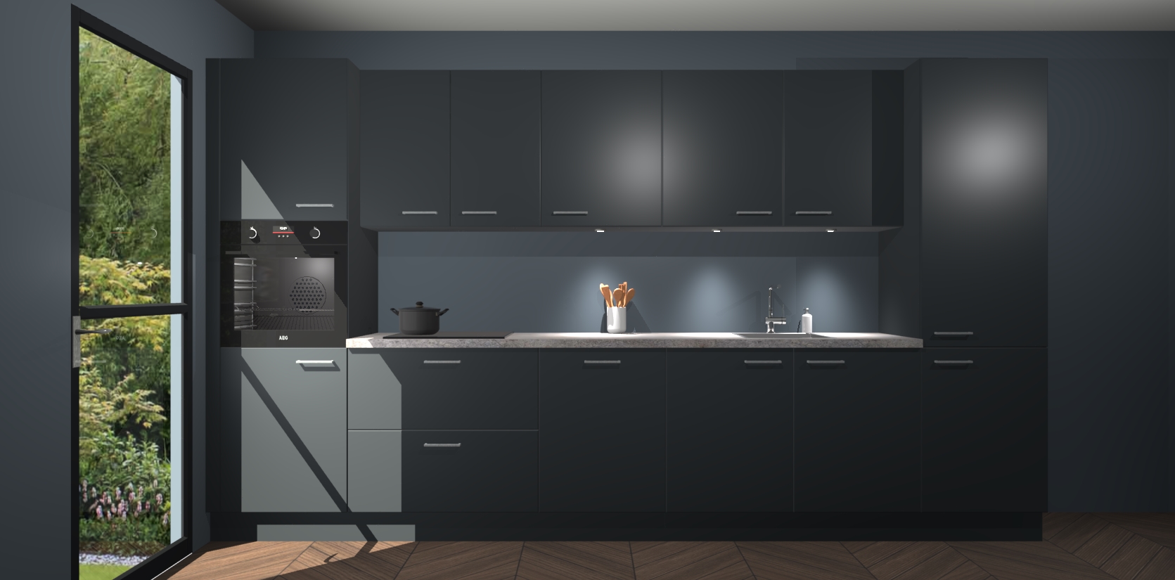 Dit is de perfecte keuken voor wie op zoek is naar een luxueuze stijl zonder zijn portemonnee te legen! Het chique ontwerp van de onyxgrijze keuken Wels voegt dat vleugje verfijning toe aan elk huis. Het gemak van voorgemonteerde kasten bespaart u talloze uren tijd en energie, zodat u veel sneller dan verwacht kunt beginnen te genieten van uw prachtige nieuwe keuken. Bovendien bedraagt de levertijd slechts 7 weken.