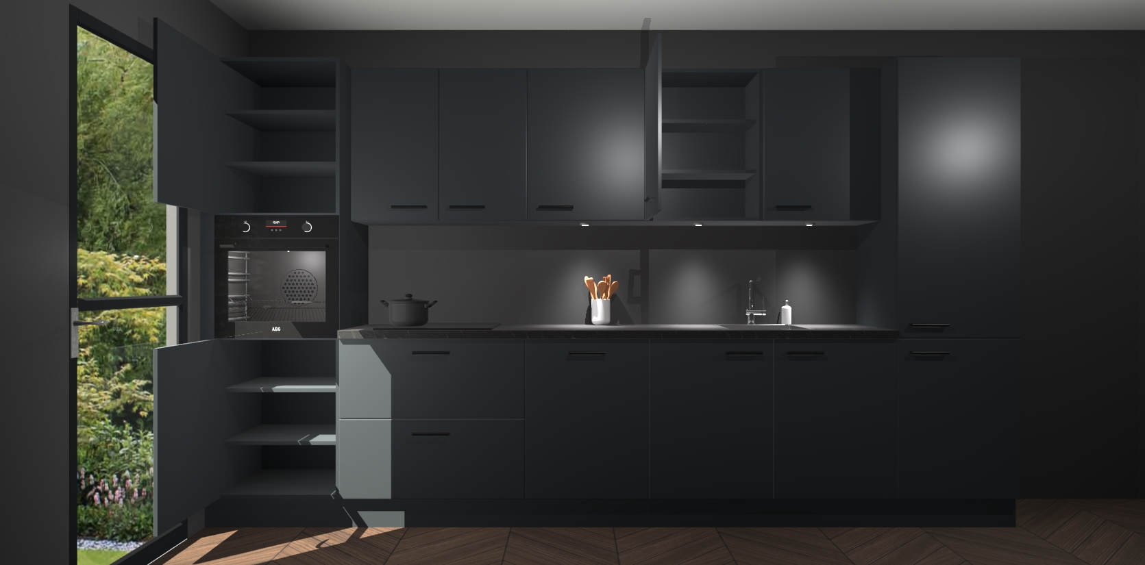Dit is de perfecte keuken voor wie op zoek is naar een luxueuze stijl zonder zijn portemonnee te legen! Het chique ontwerp van de onyxgrijze keuken Wels voegt dat vleugje verfijning toe aan elk huis. Het gemak van voorgemonteerde kasten bespaart u talloze uren tijd en energie, zodat u veel sneller dan verwacht kunt beginnen te genieten van uw prachtige nieuwe keuken. Bovendien bedraagt de levertijd slechts 7 weken.