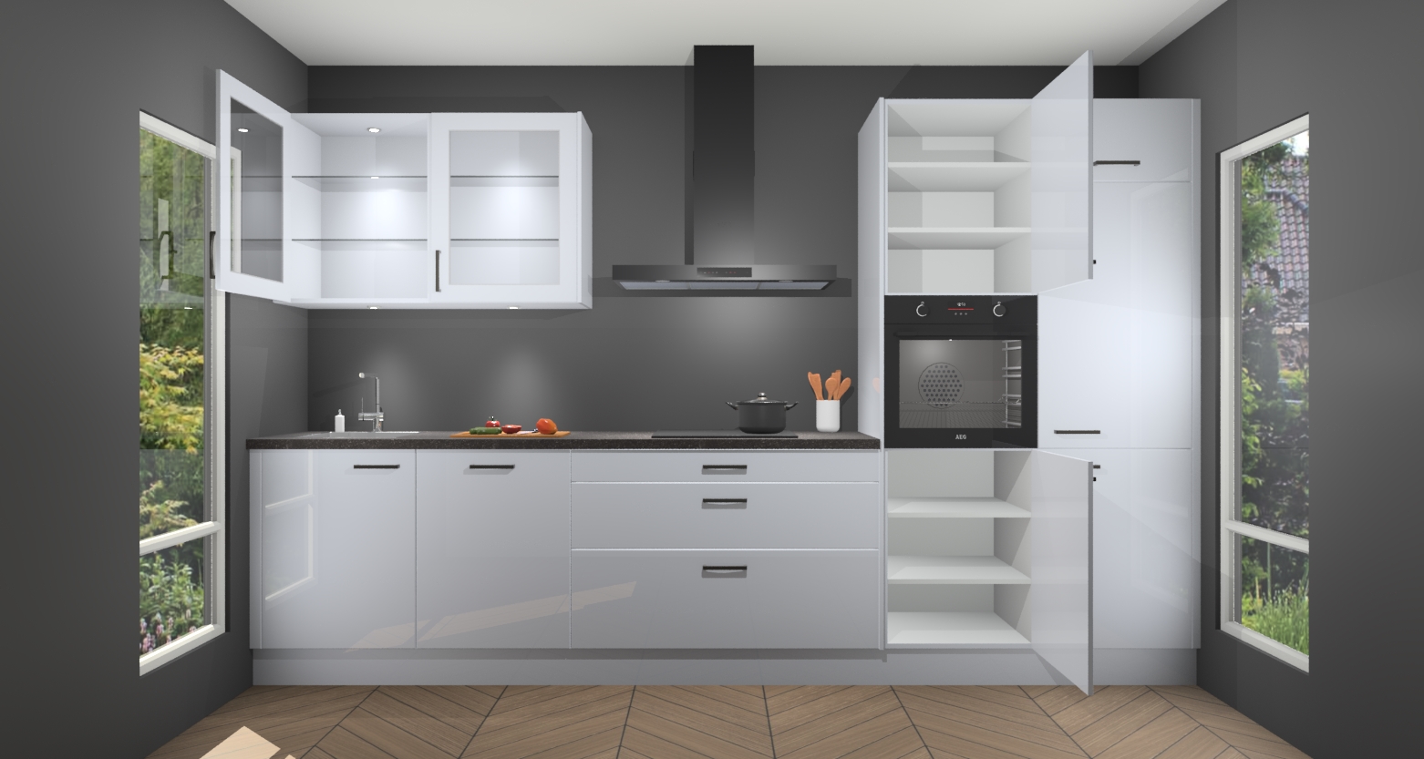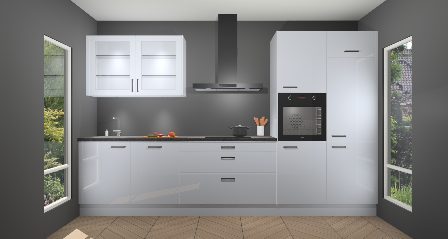 De sneeuwwit hoogglans keuken Cairo is de perfecte mix van modern en tijdloos design. Met zijn prachtige glazen deuren op de bovenkastjes voegt hij echt iets speciaals en unieks toe aan elke keuken. En met vijf ingebouwde apparaten inbegrepen - een oven, inductiekookplaat, afzuigkap, vaatwasser en koelkast - kunt u deze keuken echt helemaal van uzelf maken! U kunt na bestelling ook upgraden naar AEG voor een nog hogere kwaliteitservaring.