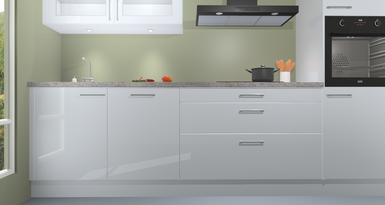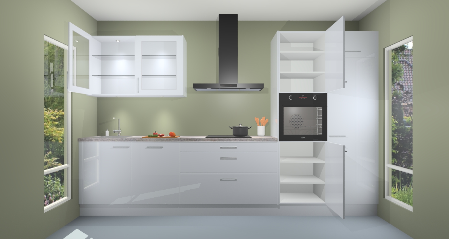 De sneeuwwit hoogglans keuken Cairo is de perfecte mix van modern en tijdloos design. Met zijn prachtige glazen deuren op de bovenkastjes voegt hij echt iets speciaals en unieks toe aan elke keuken. En met vijf ingebouwde apparaten inbegrepen - een oven, inductiekookplaat, afzuigkap, vaatwasser en koelkast - kunt u deze keuken echt helemaal van uzelf maken! U kunt na bestelling ook upgraden naar AEG voor een nog hogere kwaliteitservaring.