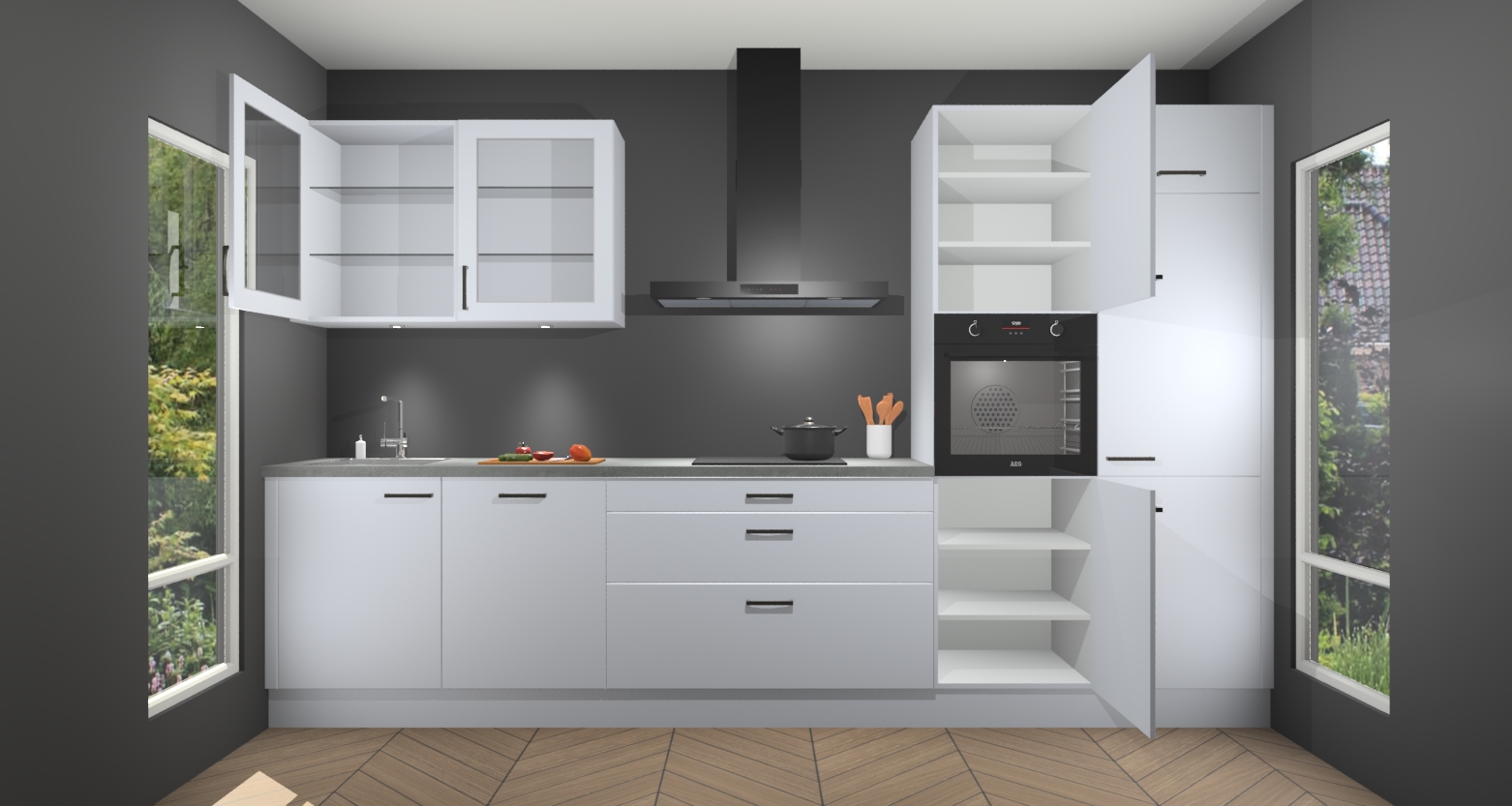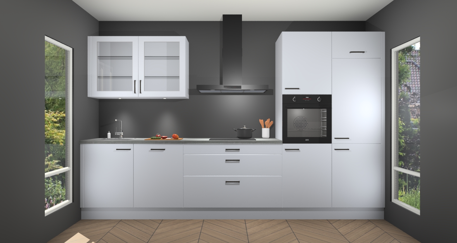 De sneeuwwit keuken Cairo is de perfecte mix van modern en tijdloos design. Met zijn prachtige glazen deuren op de bovenkastjes voegt hij echt iets speciaals en unieks toe aan elke keuken. En met vijf ingebouwde apparaten inbegrepen - een oven, inductiekookplaat, afzuigkap, vaatwasser en koelkast - kunt u deze keuken echt helemaal van uzelf maken! U kunt na bestelling ook upgraden naar AEG voor een nog hogere kwaliteitservaring.