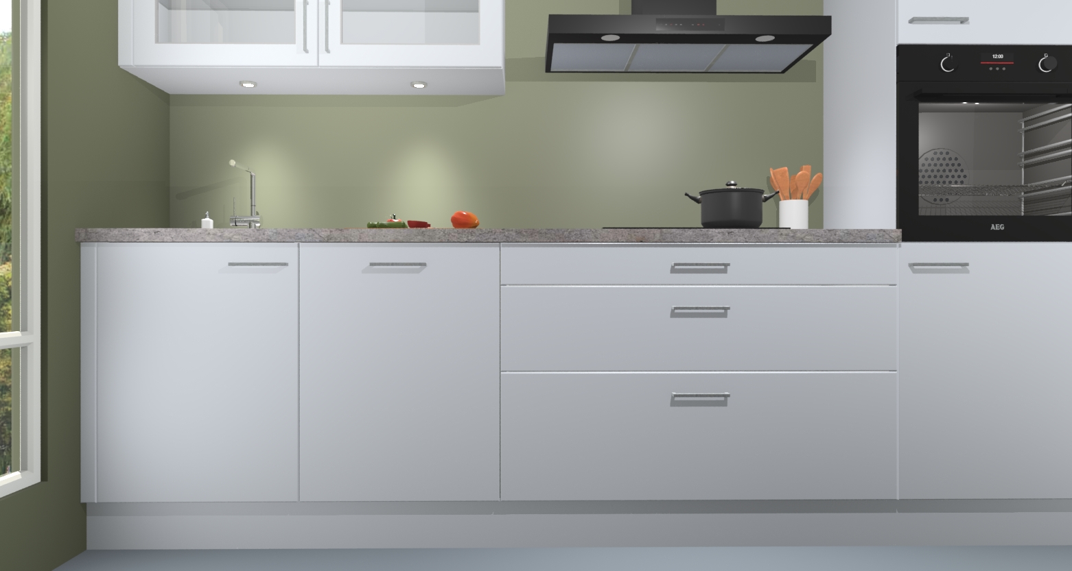 In deze box zijn alle kleuren verzameld van de deuren en werkbladen. Vraag de gratis kleurenbox aan en kijk thuis rustig verder!