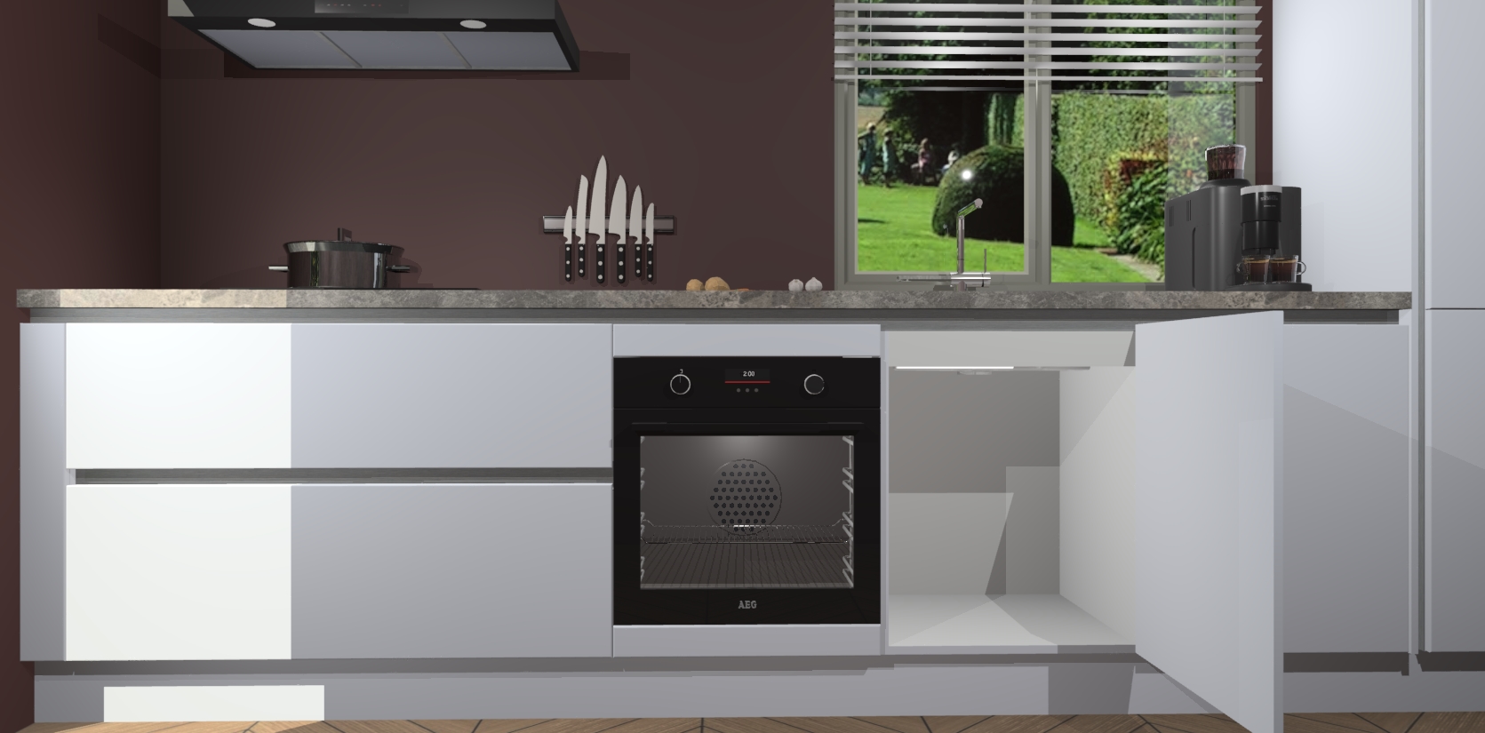 - Ombouw om de oven onder het werkblad te kunnen monteren