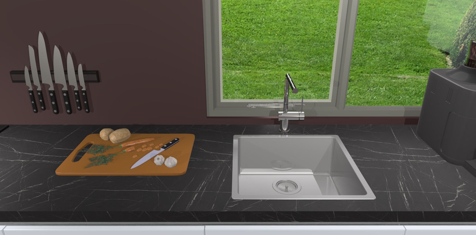 - De spoelbak is nog niet in gevreesd. Dit dient tijdens het werk gedaan te worden