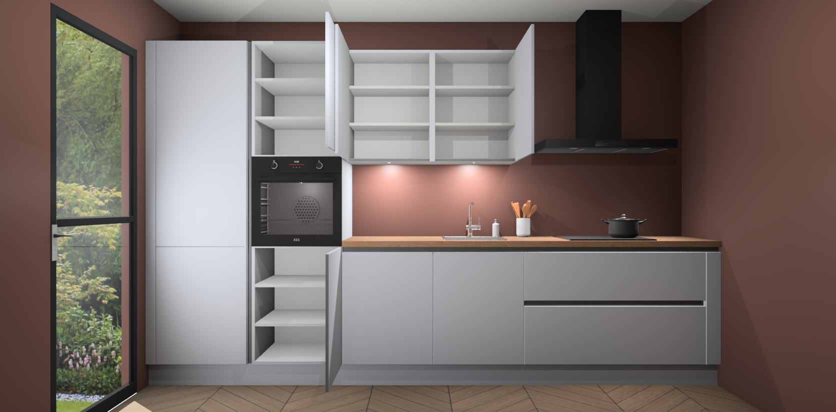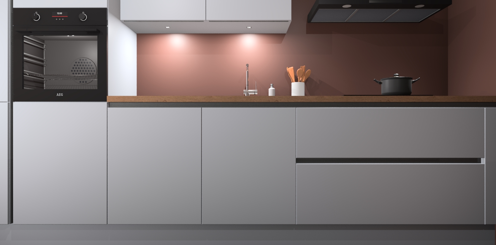 Inclusief plinten, stelpoten en werkblad