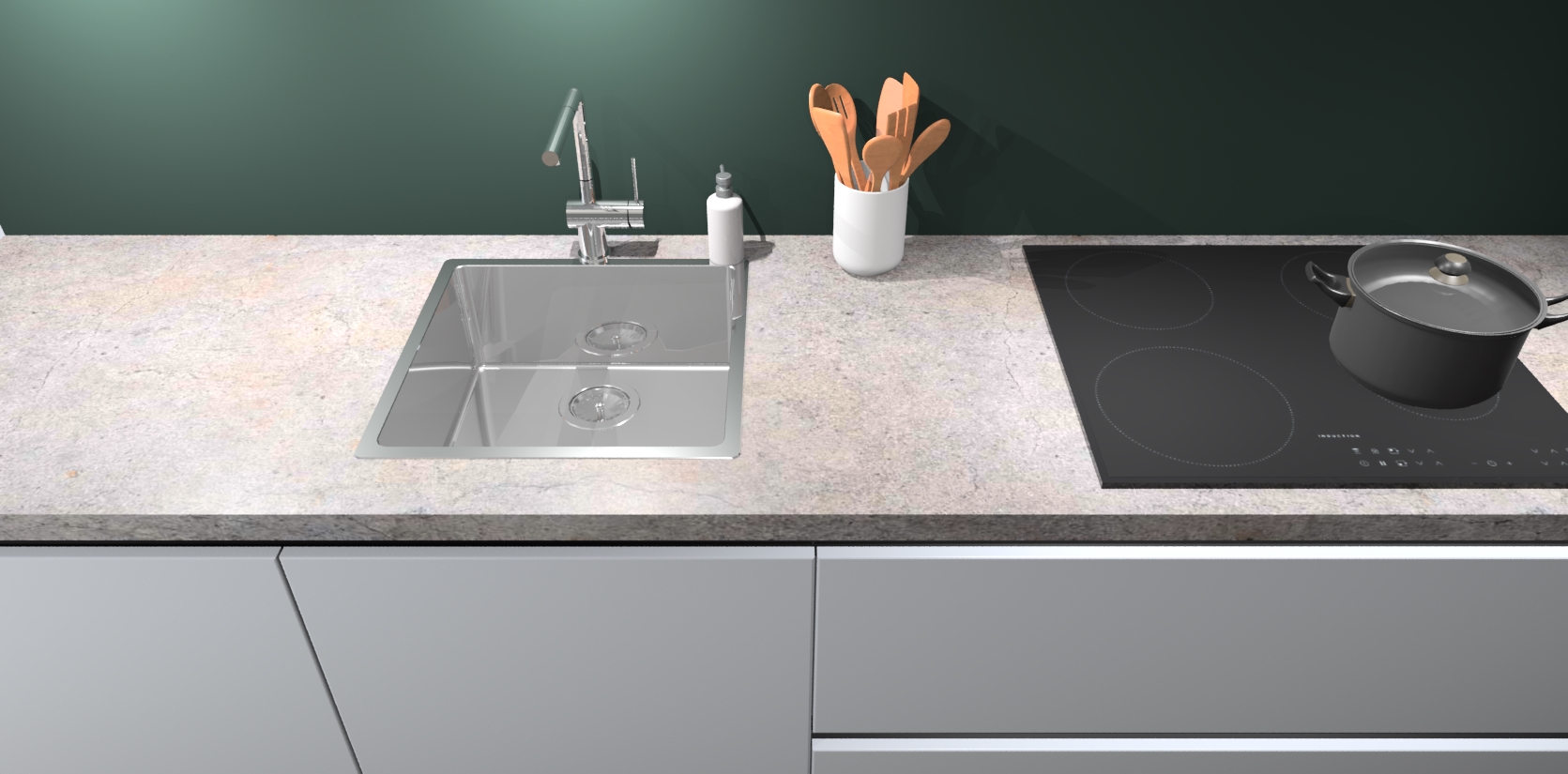 - Uitsparing van kookplaat, spoelbak en kraan dient u zelf te verzorgen.