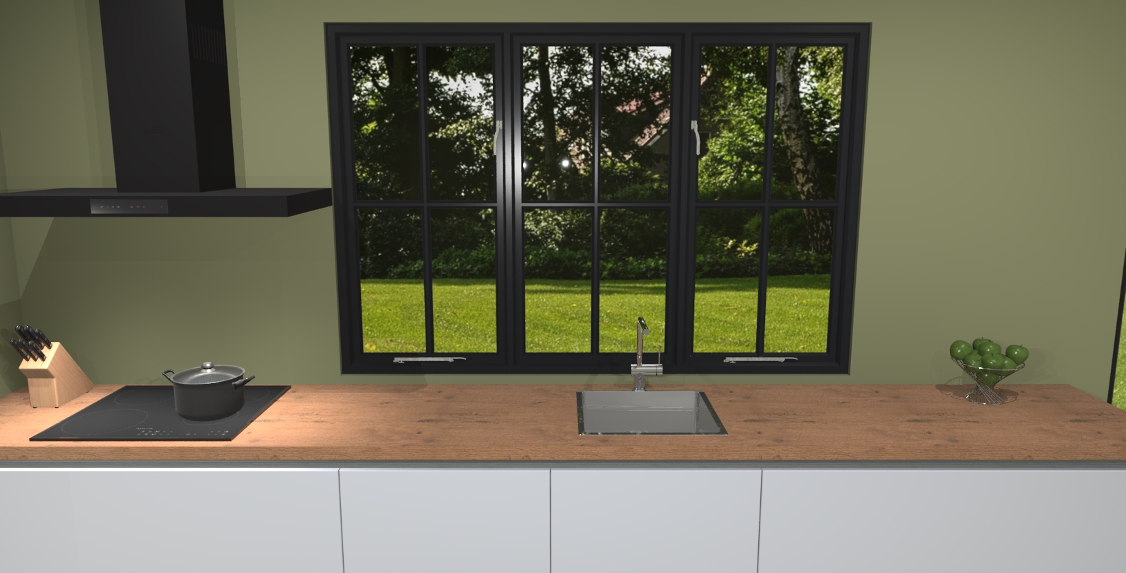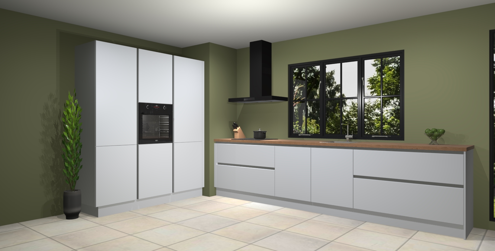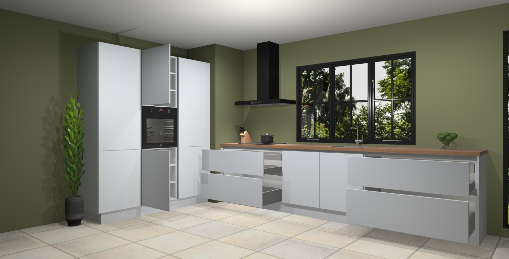 De softclose deuren openen en sluiten is ook heel eenvoudig - geniet van een moeiteloze keukenervaring, zelfs als er kinderen rondlopen. Voor extra gemak bij het plaatsen van uw bestelling bieden we ook een upgrade naar een kookplaat met geïntegreerde afzuiging.