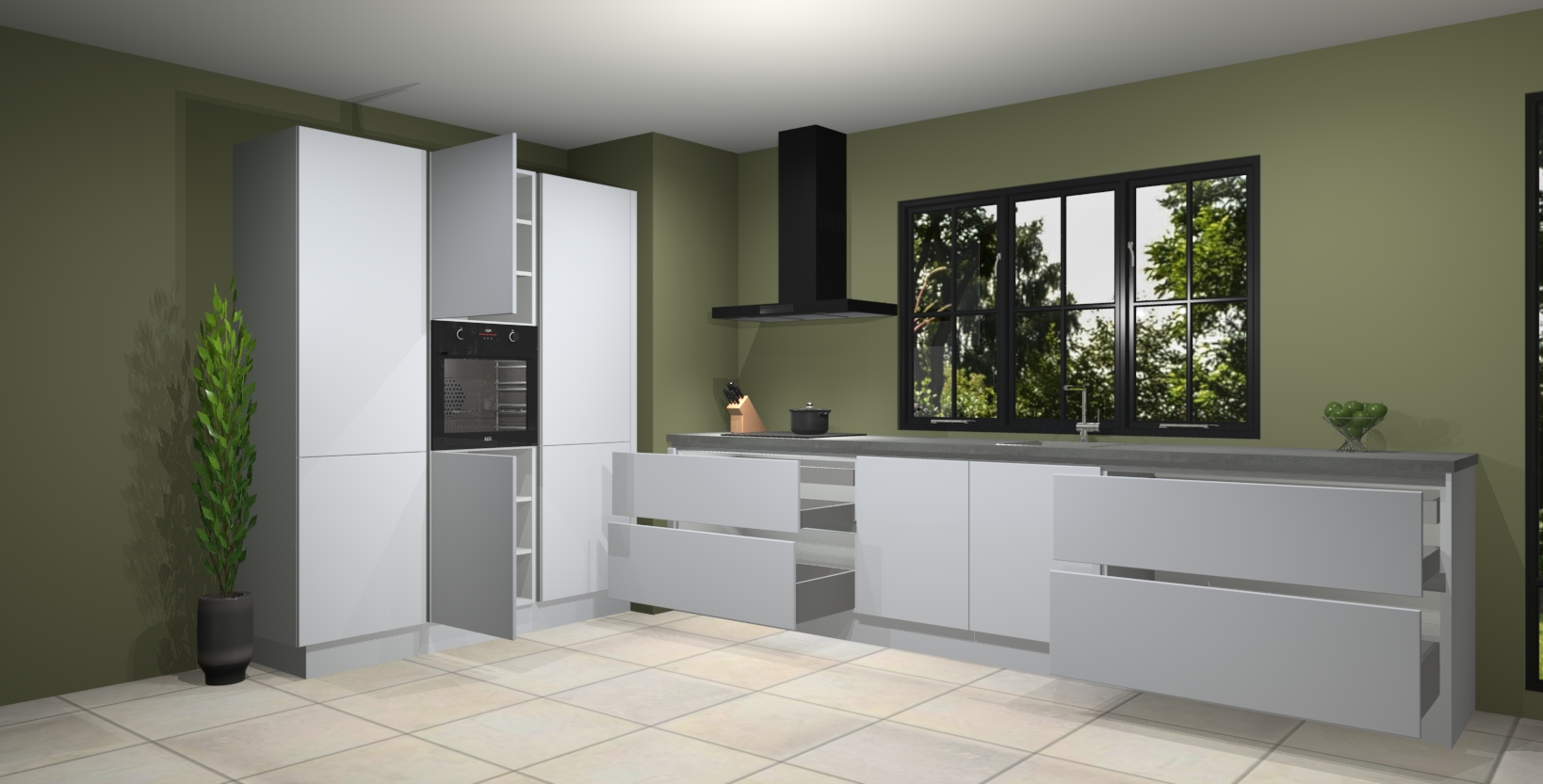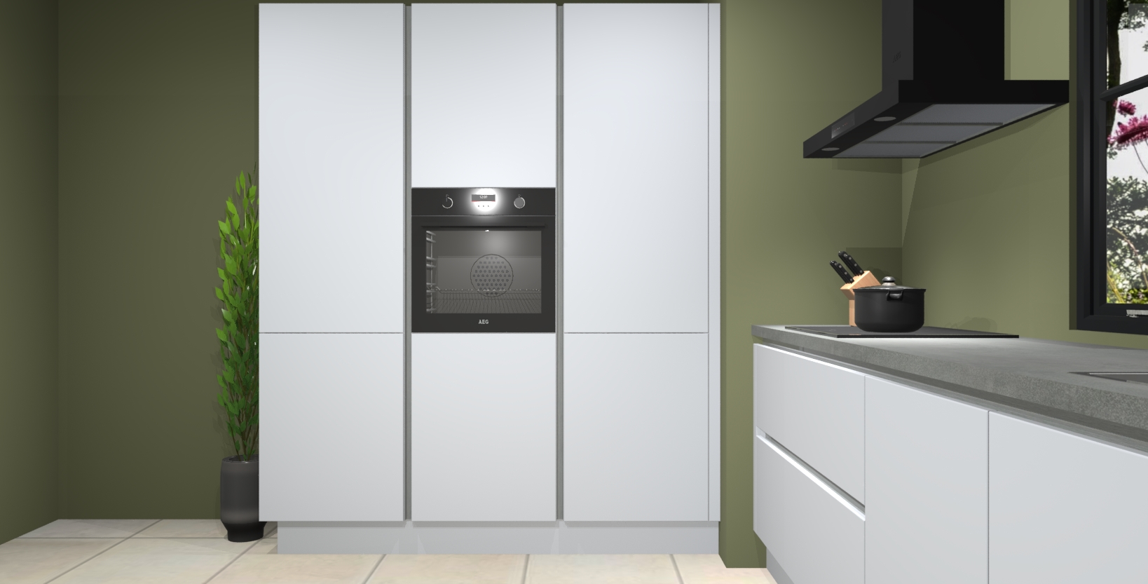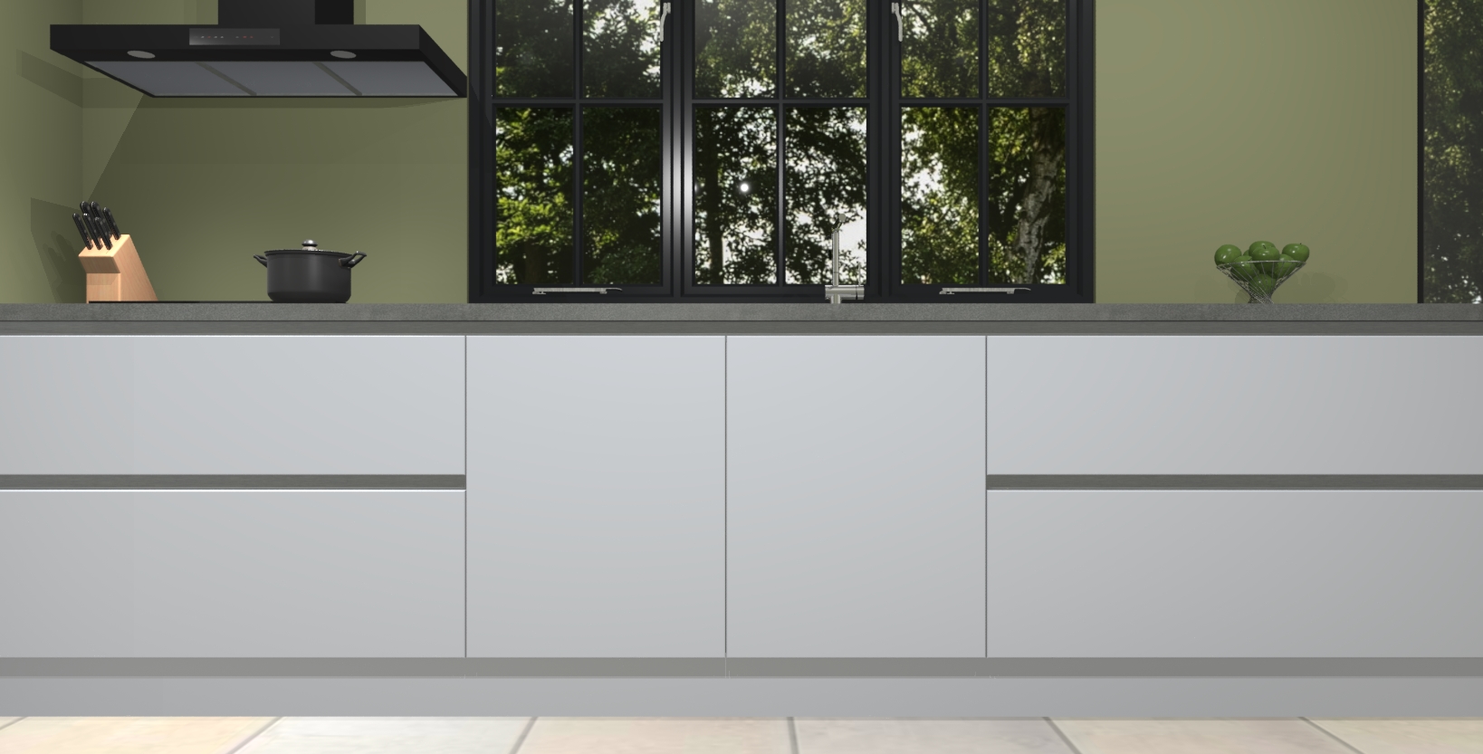 De softclose deuren openen en sluiten is ook heel eenvoudig - geniet van een moeiteloze keukenervaring, zelfs als er kinderen rondlopen. Voor extra gemak bij het plaatsen van uw bestelling bieden we ook een upgrade naar een kookplaat met geïntegreerde afzuiging.
