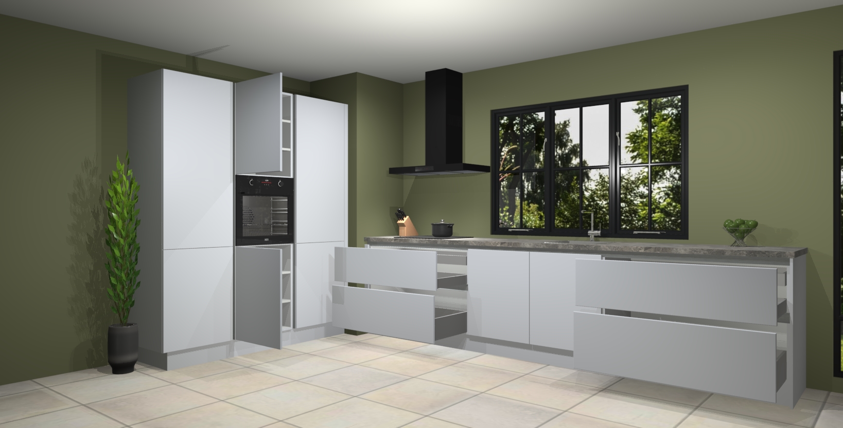 Inclusief plinten, stelpoten en werkblad