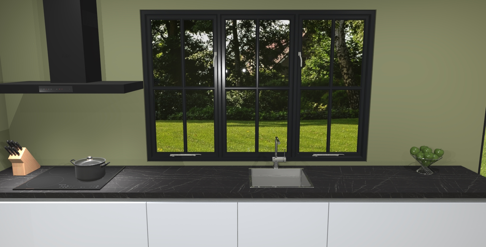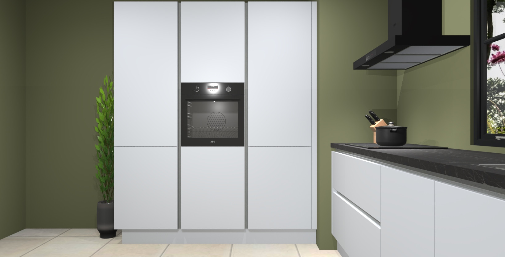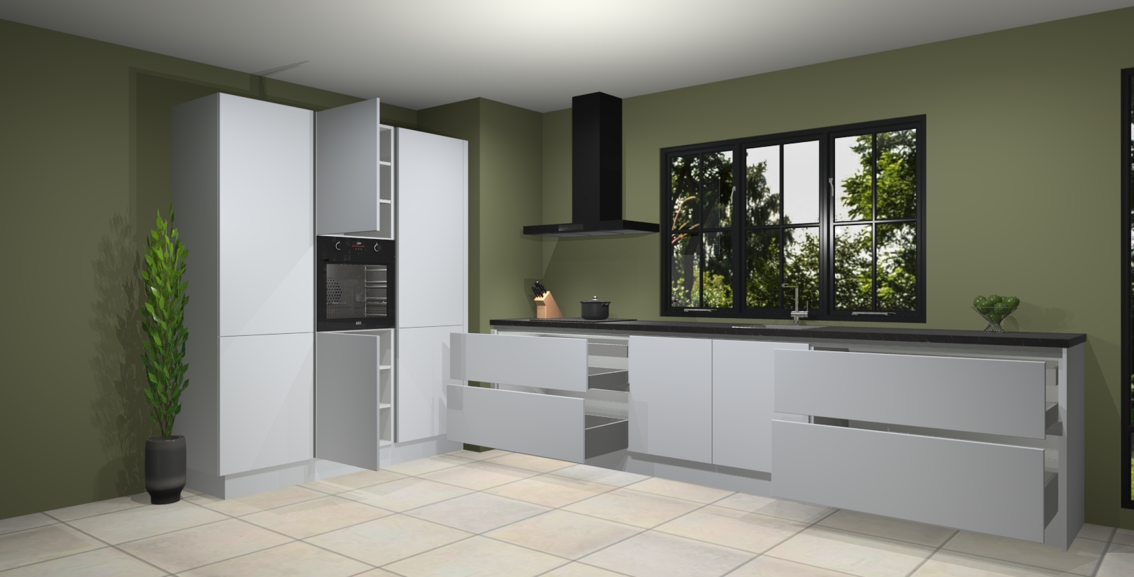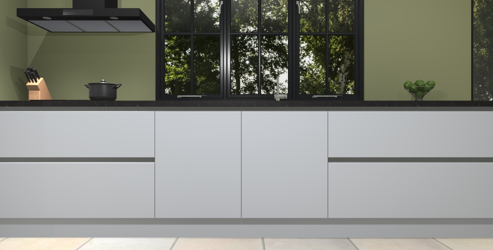 De softclose deuren openen en sluiten is ook heel eenvoudig - geniet van een moeiteloze keukenervaring, zelfs als er kinderen rondlopen. Voor extra gemak bij het plaatsen van uw bestelling bieden we ook een upgrade naar een kookplaat met geïntegreerde afzuiging.
